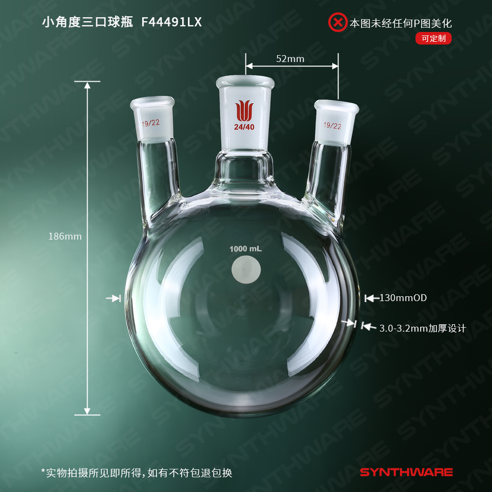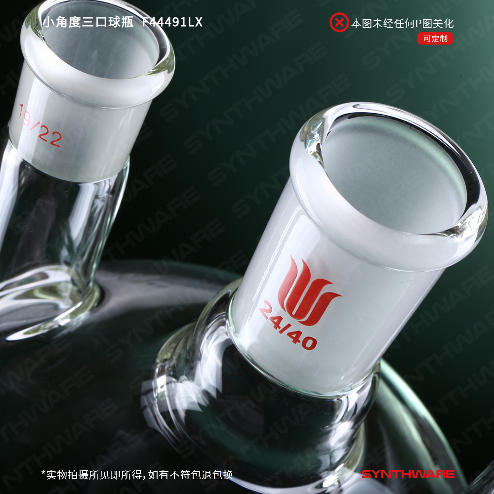 小角度三口球瓶,厚壁高强度,中间磨口:24/40,侧磨口:19/22,1000ml F44491LX