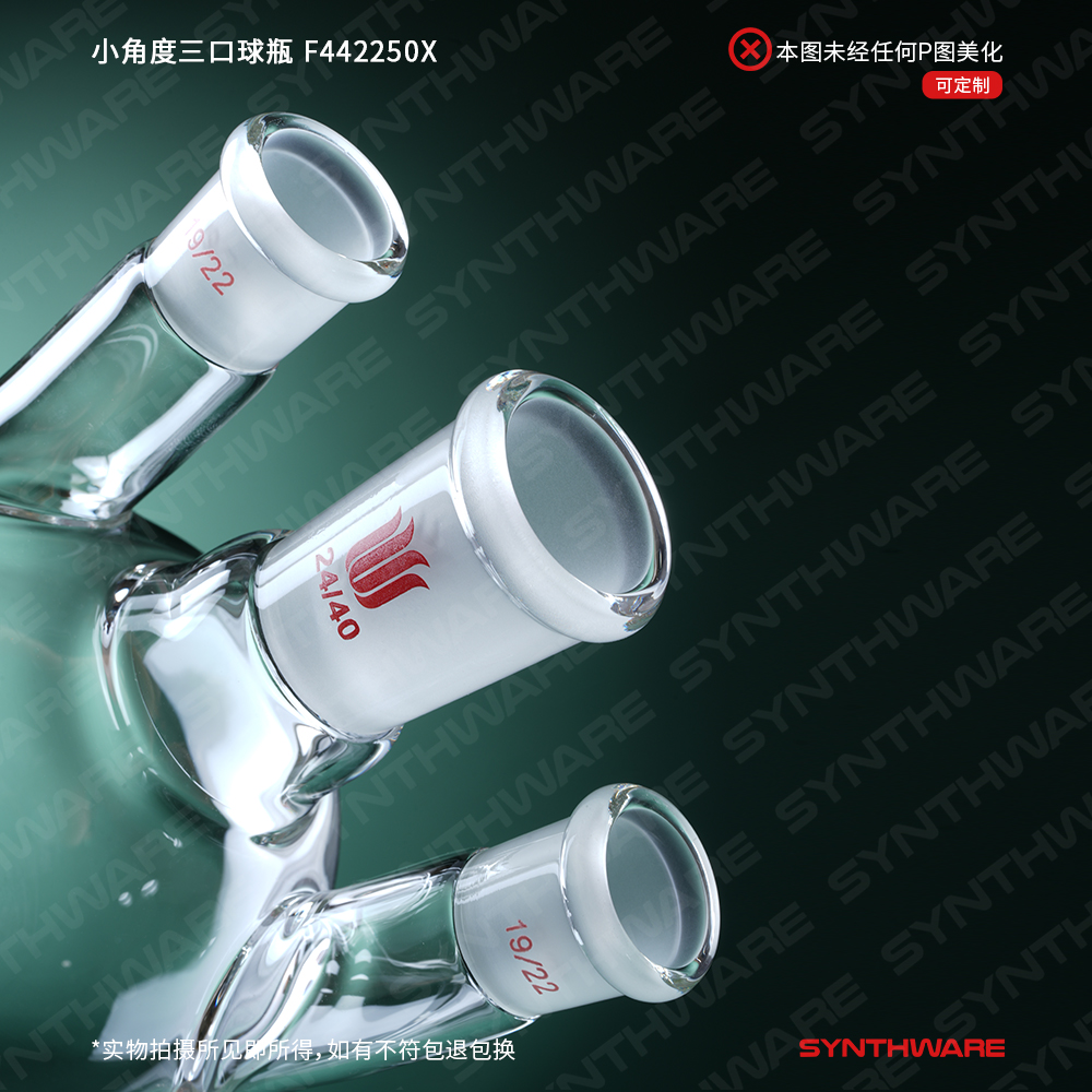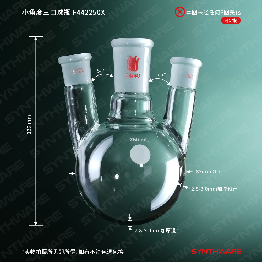 小角度三口球瓶,厚壁高强度,中间磨口24/40,侧磨口:19/22,250ml F442250X