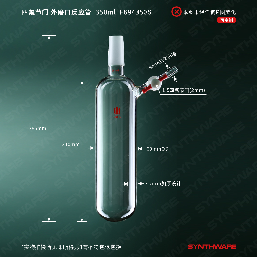 四氟节门,外磨口反应管,磨口:24/40,容量:350ml F694350S