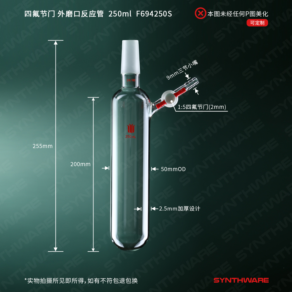四氟节门,外磨口反应管,磨口:24/40,容量:250ml F694250S