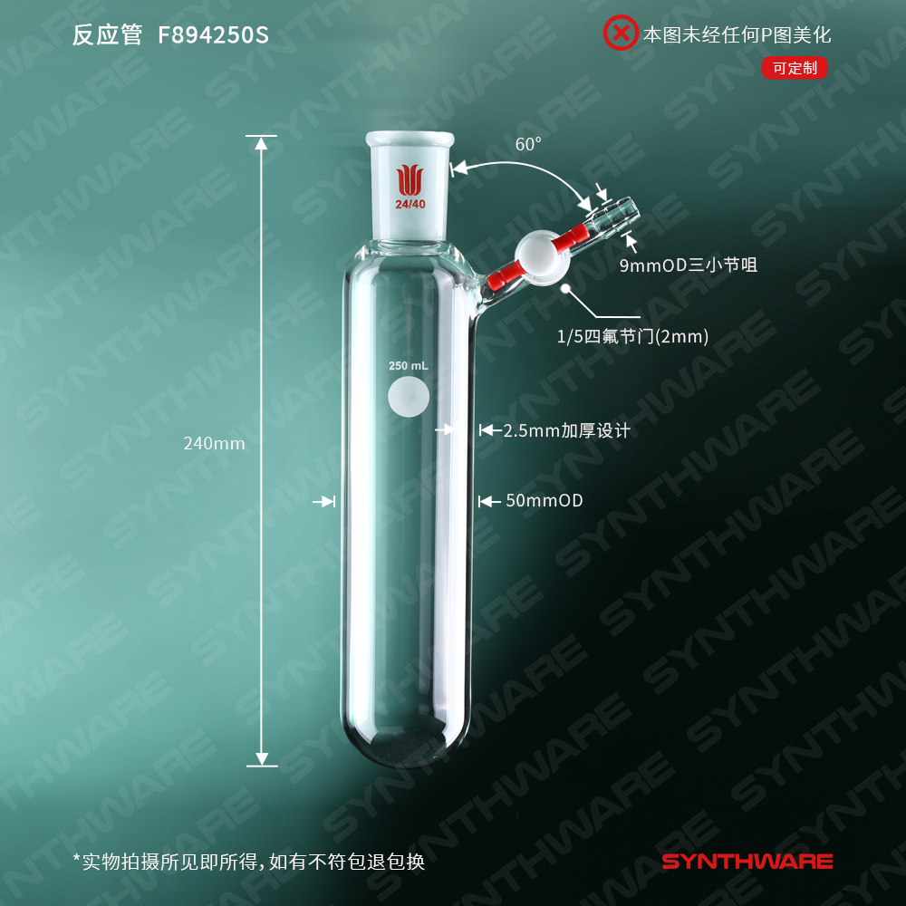 反应管,内磨口24/40,具2mm四氟节门,250ml F894250S