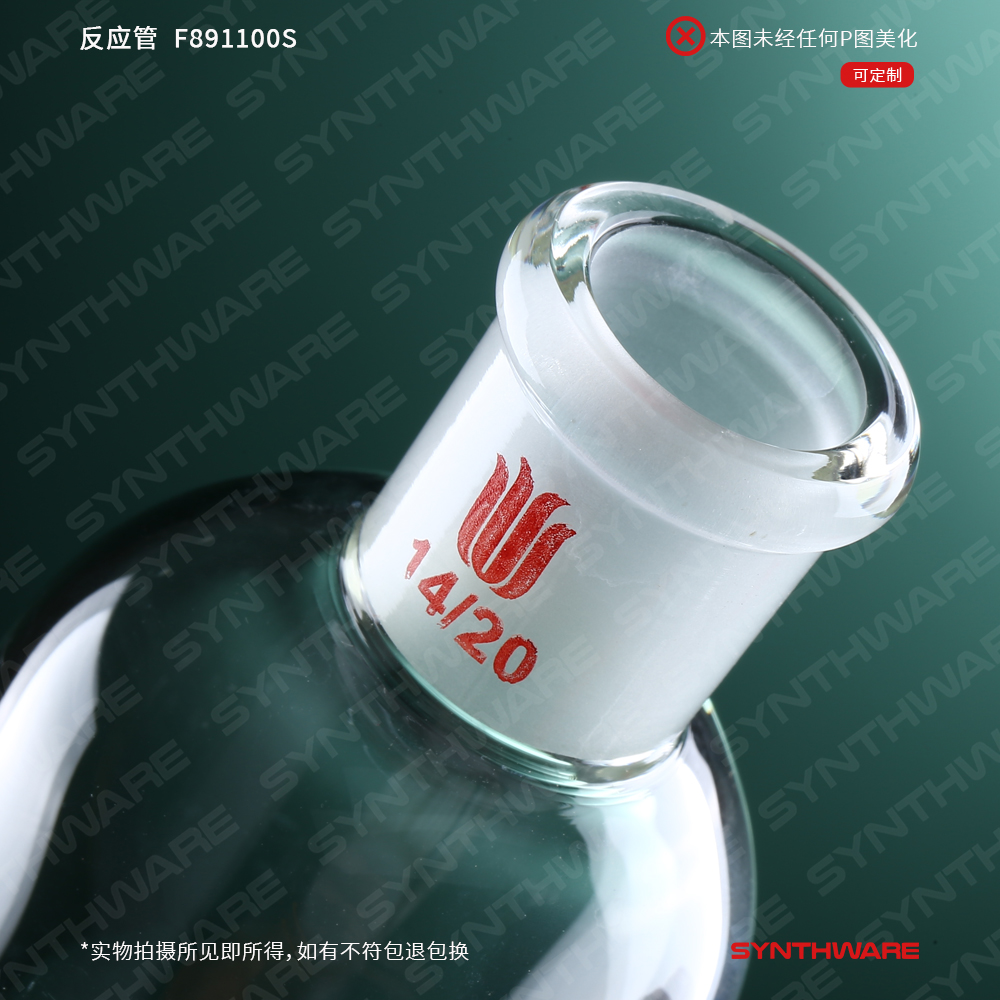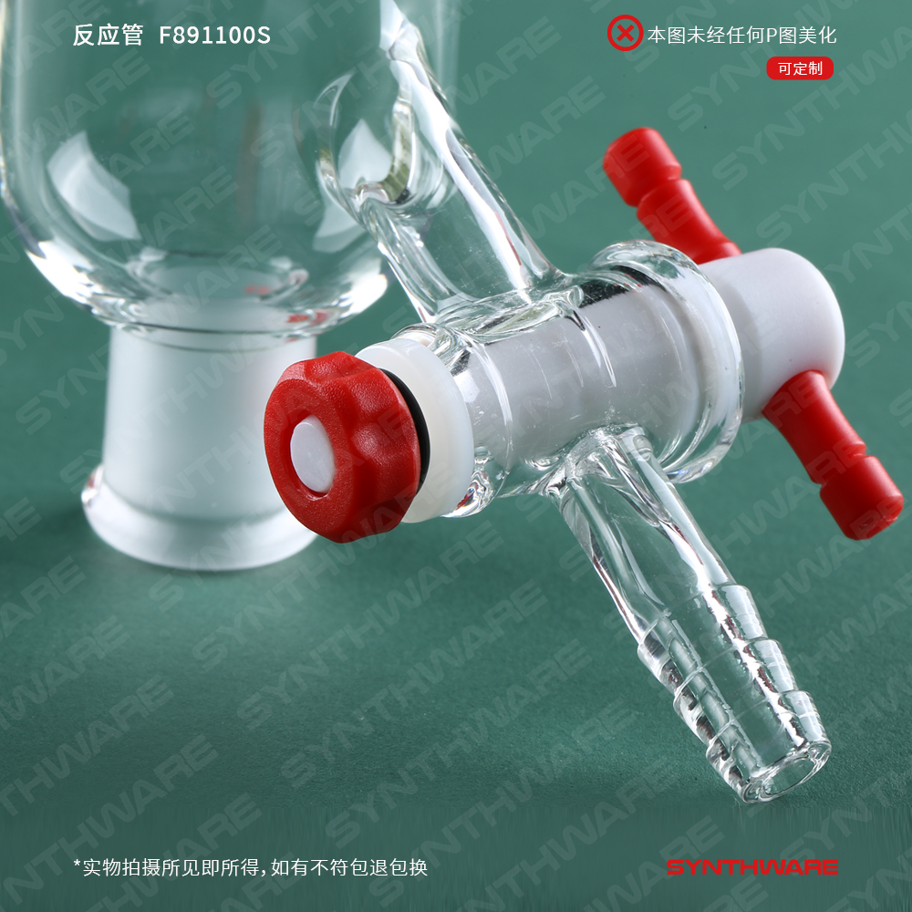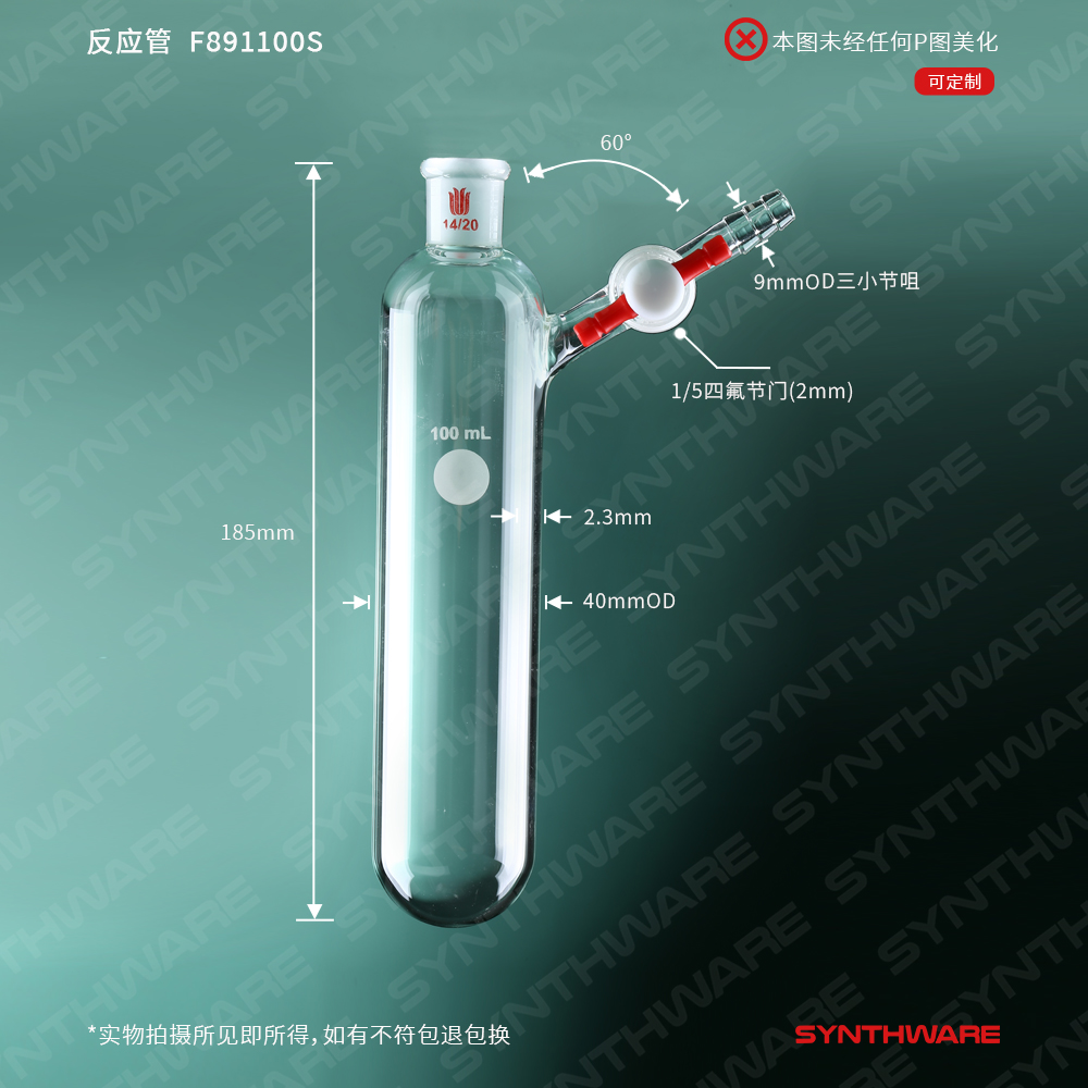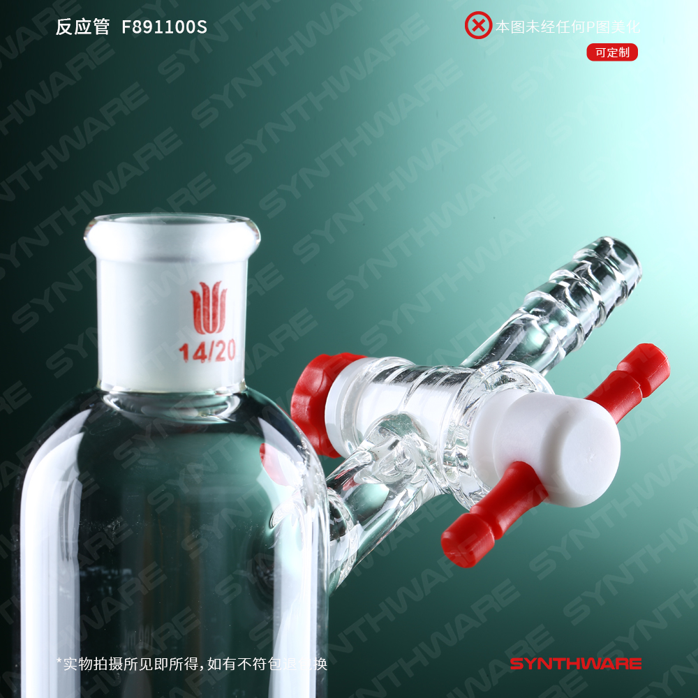 反应管,内磨口14/20,具2mm四氟节门,100ml F891100S