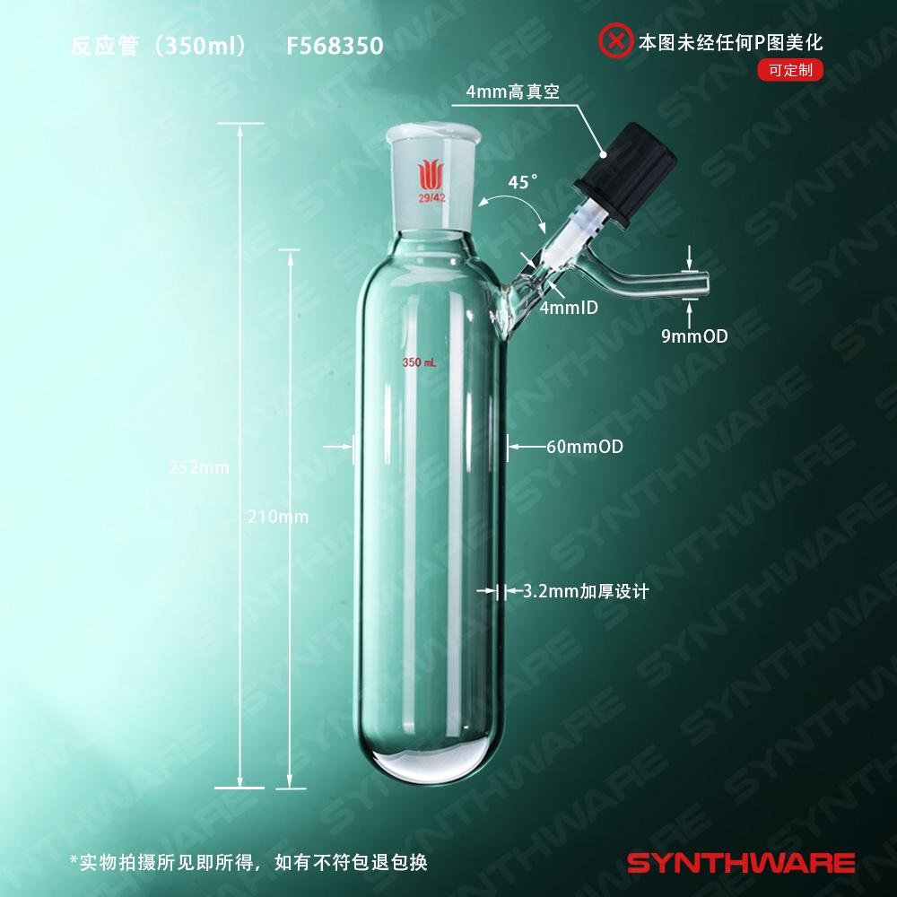 反应管,内磨口29/42,4mm高真空阀,350ml F568350