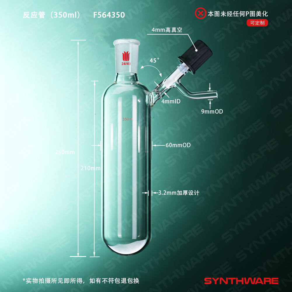 反应管,内磨口24/40,4mm高真空阀,350ml F564350