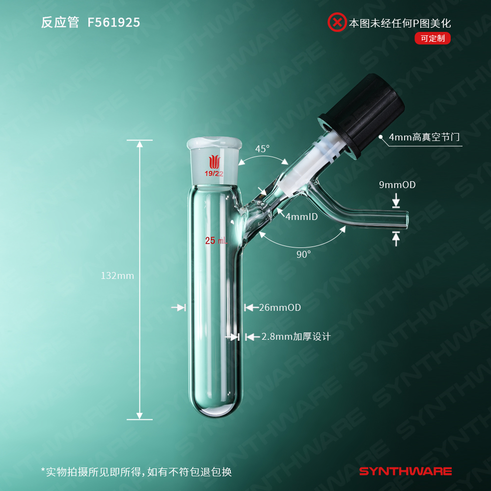 带高真空节门的溶剂反应管,可确保溶剂的密封性。高真空节门的特点:四氟全包裹的四氟节门,防化学腐蚀。