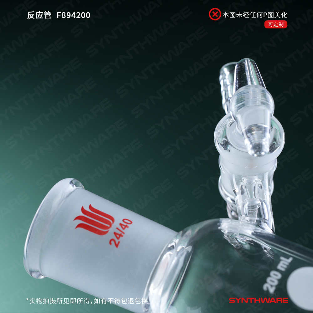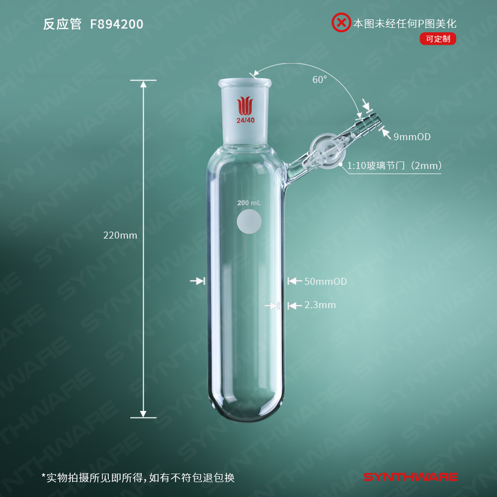 反应管,内磨口24/40,具2mm玻璃节门,200ml F894200