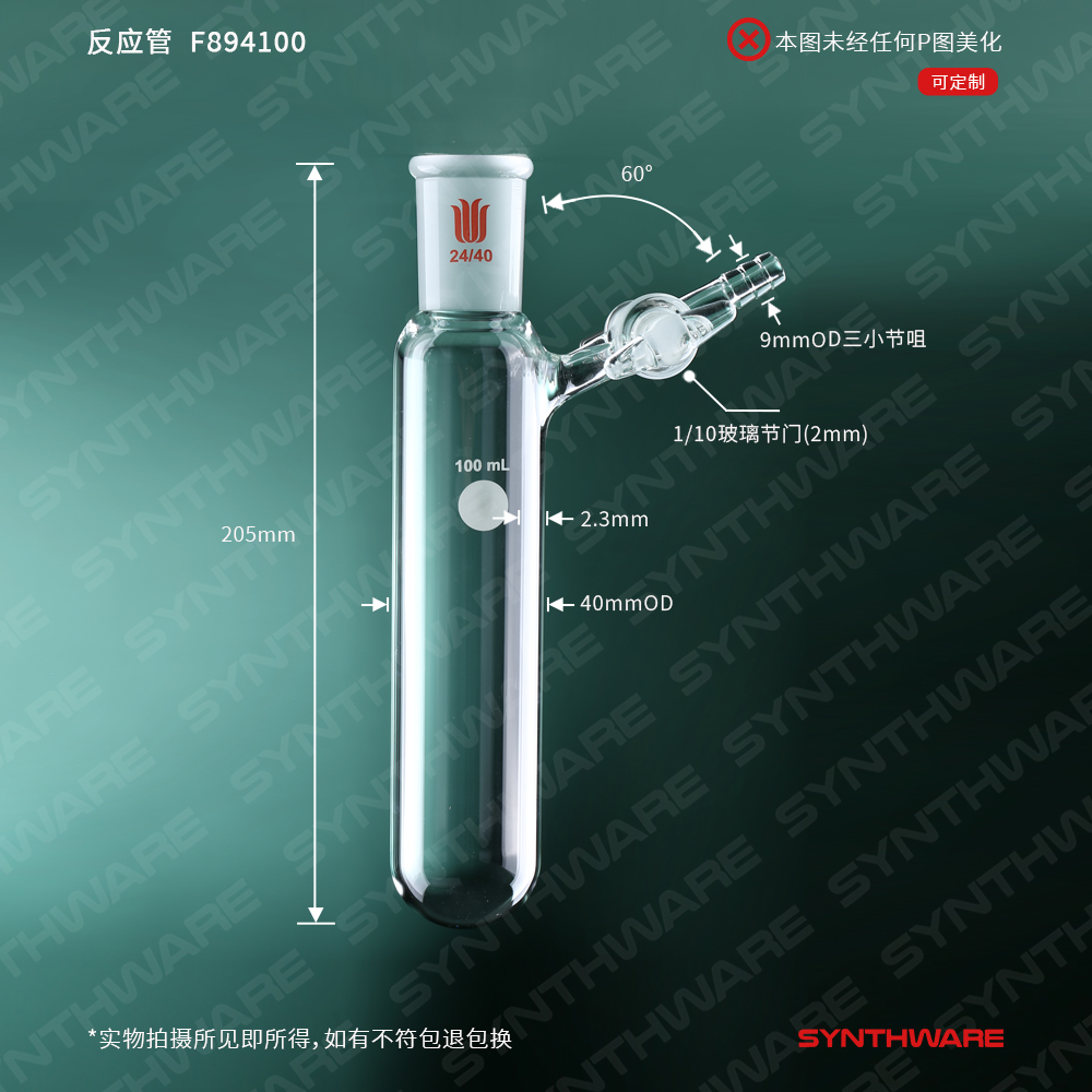 反应管,内磨口24/40,具2mm玻璃节门,100ml F894100