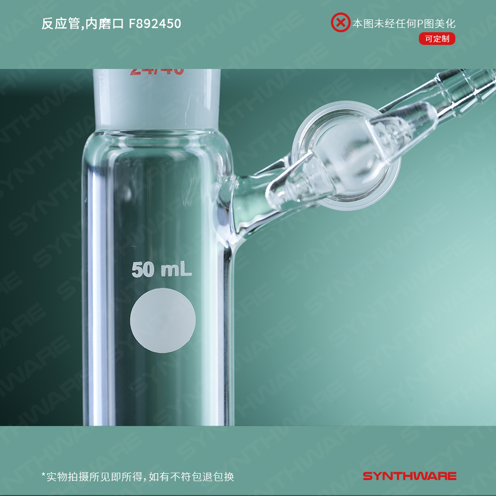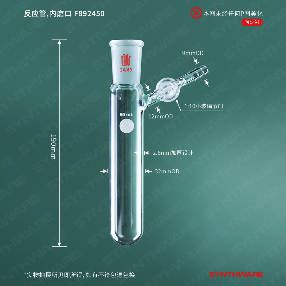 反应管,内磨口24/40,具2mm玻璃节门,50ml F892450