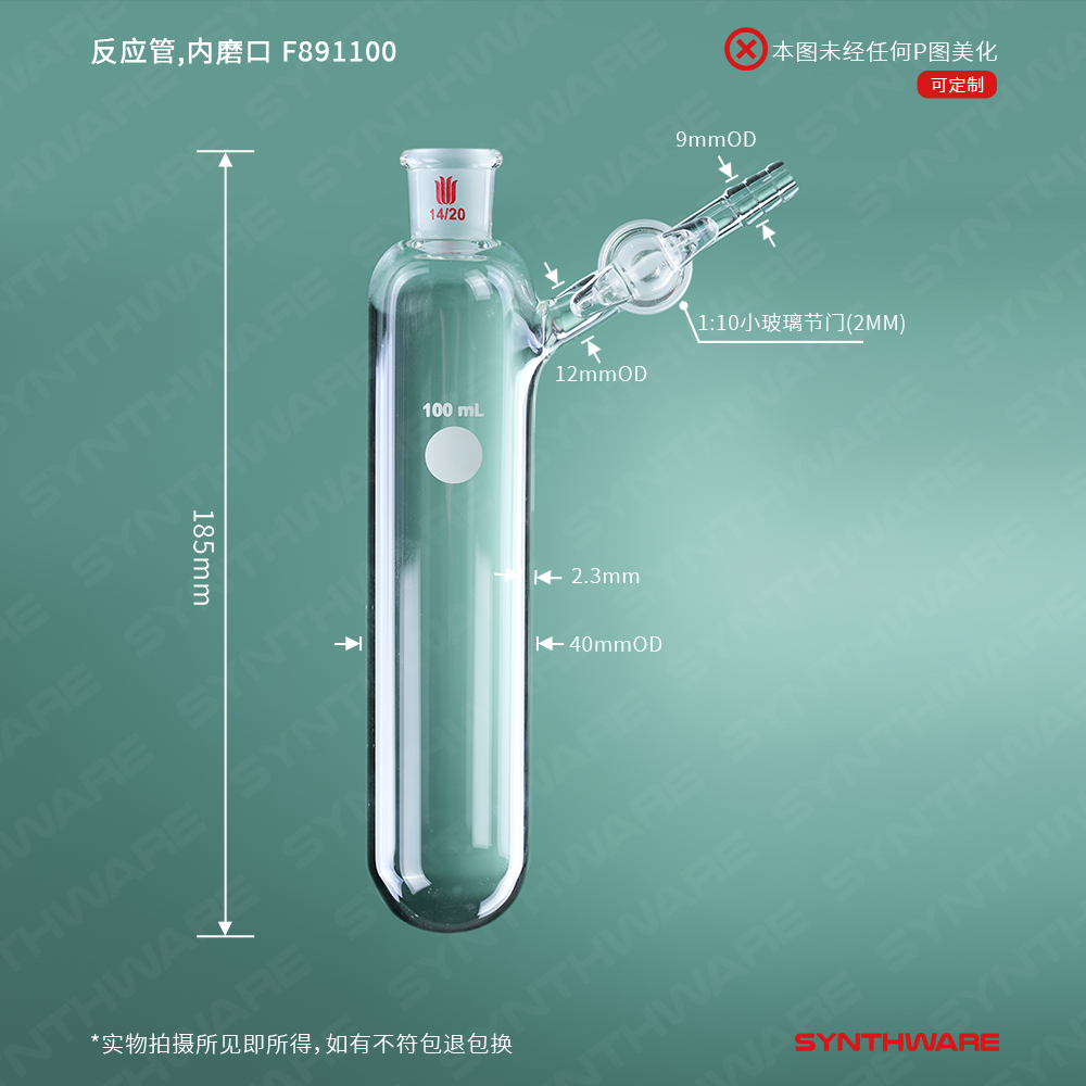 反应管,内磨口14/20,具2mm玻璃节门,100ml F891100