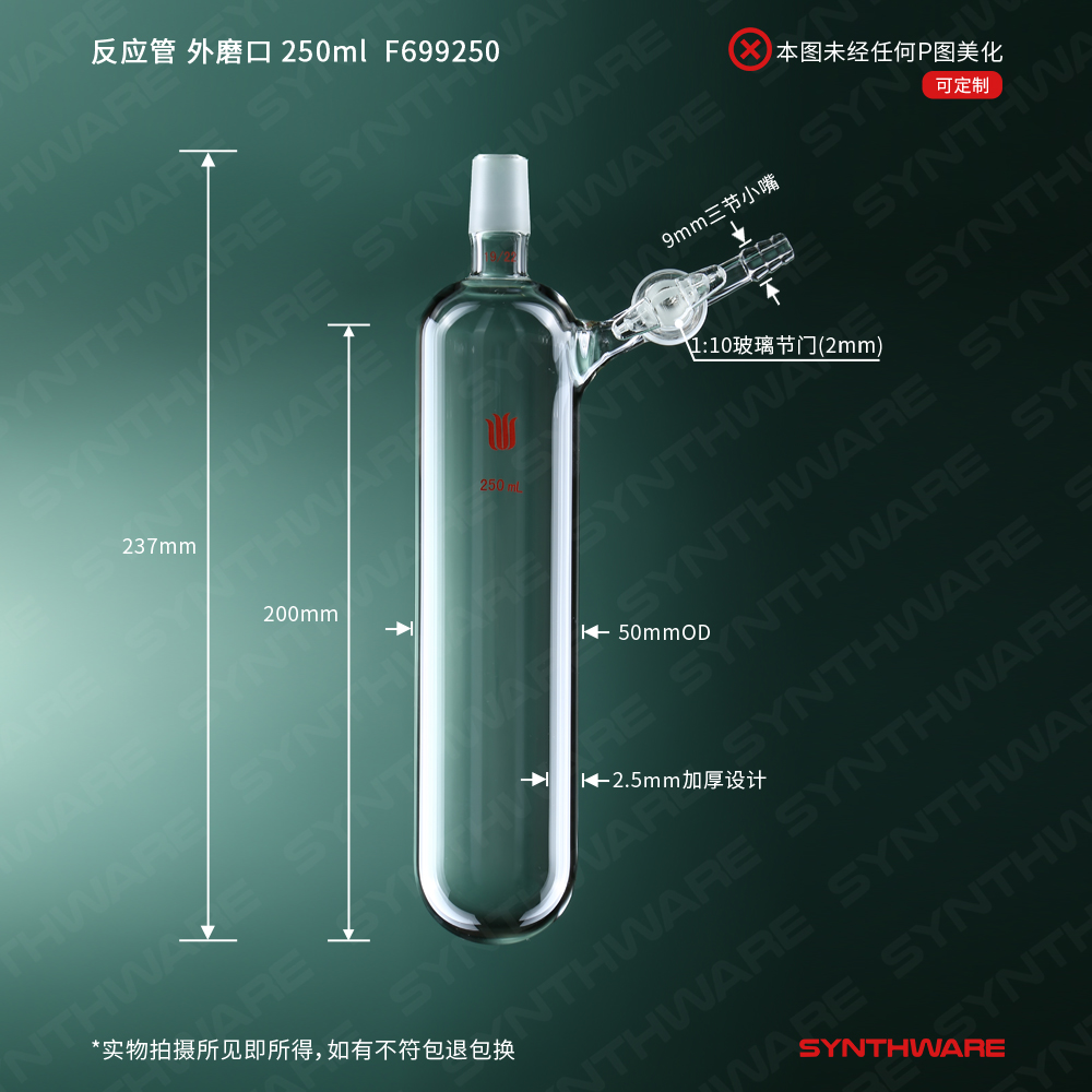 反应管,外磨口24/40,玻璃节门,250ml F694250