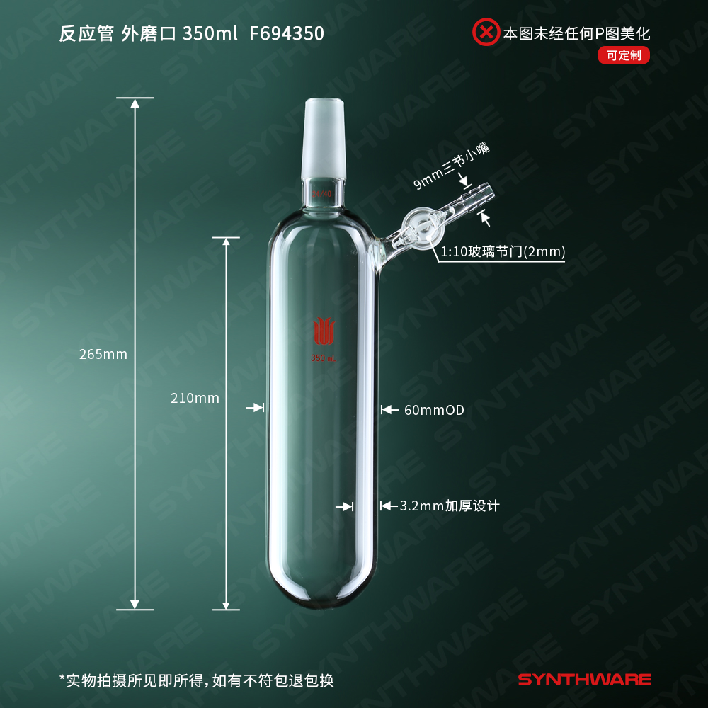 反应管,外磨口24/40,玻璃节门,350ml F694350