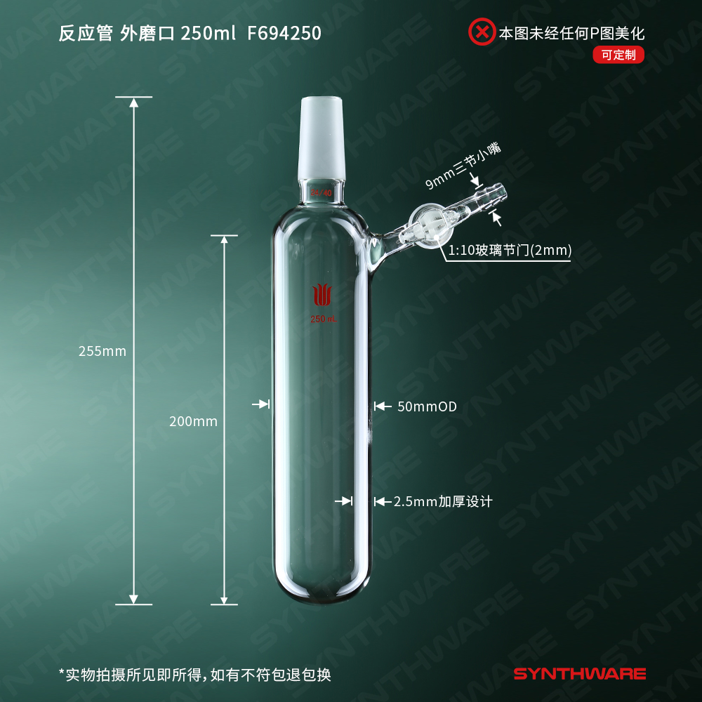 反应管,外磨口24/40,玻璃节门,250ml F694250