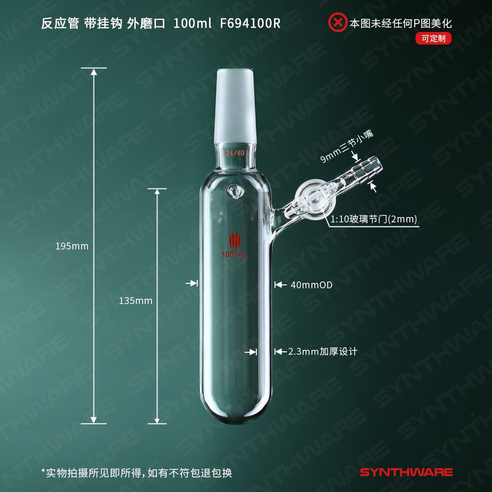 反应管,带挂钩 外磨口24/40,玻璃节门,100ml F694100R