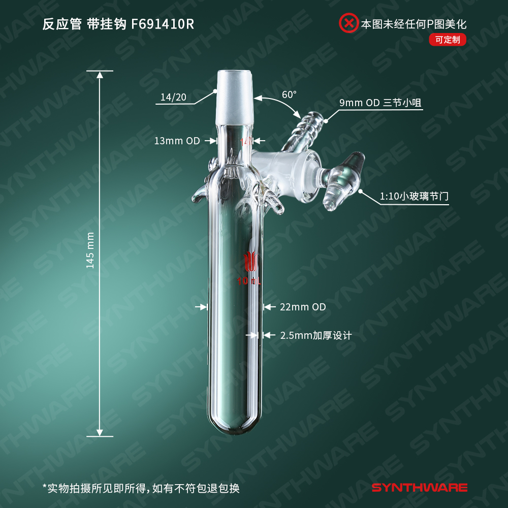 反应管,带挂钩 外磨口19/22,玻璃节门,10ml F691910R