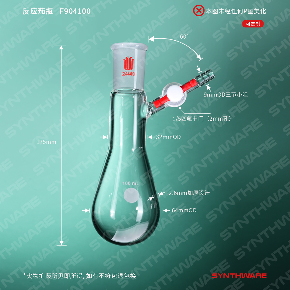反应茄瓶,磨口:24/40,100ml,四氟节门 F904100