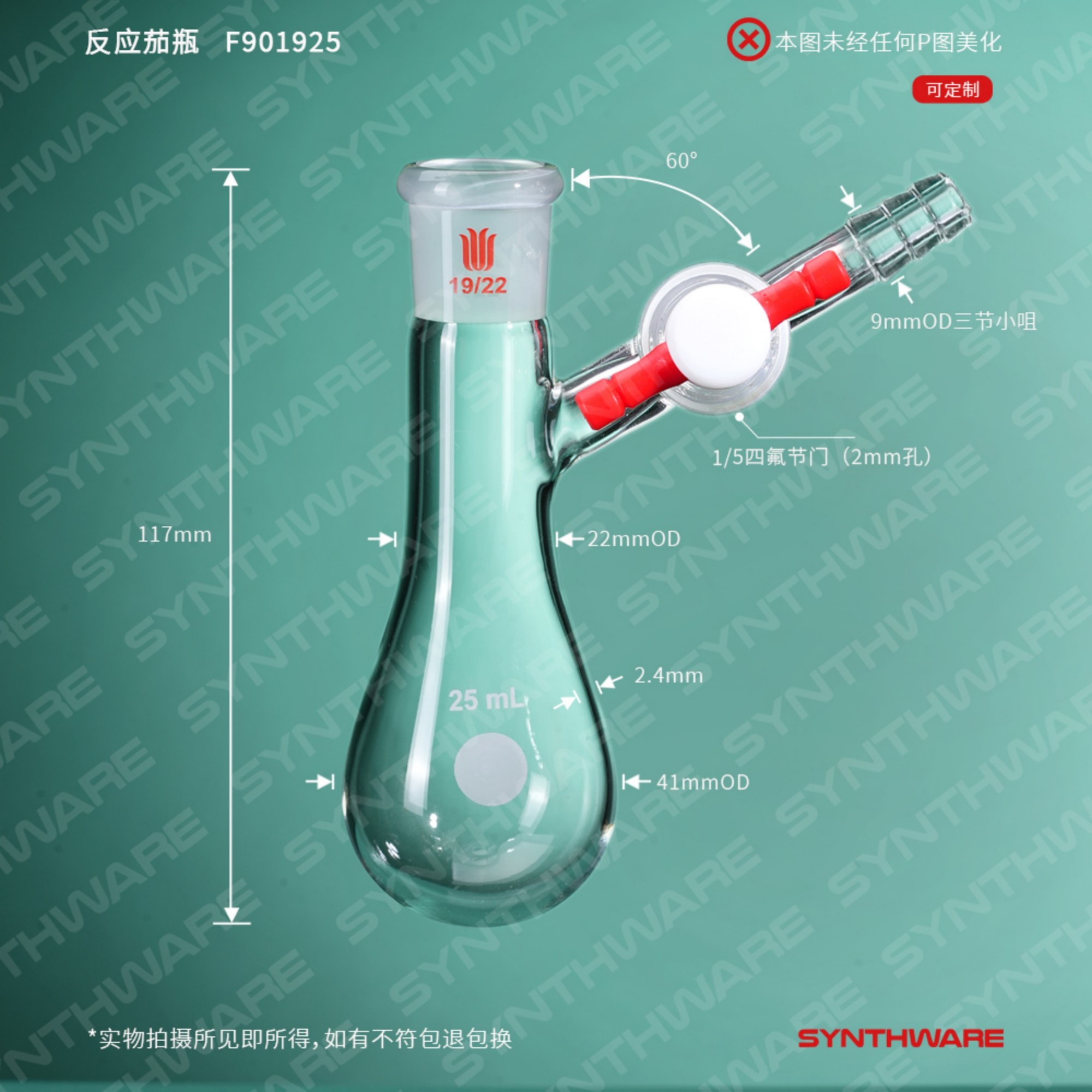 反应茄瓶,磨口:19/22,25ml,四氟节门 F901925