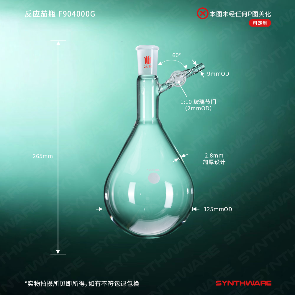 反应茄瓶,磨口:24/40,1000ml,玻璃节门 F904000G
