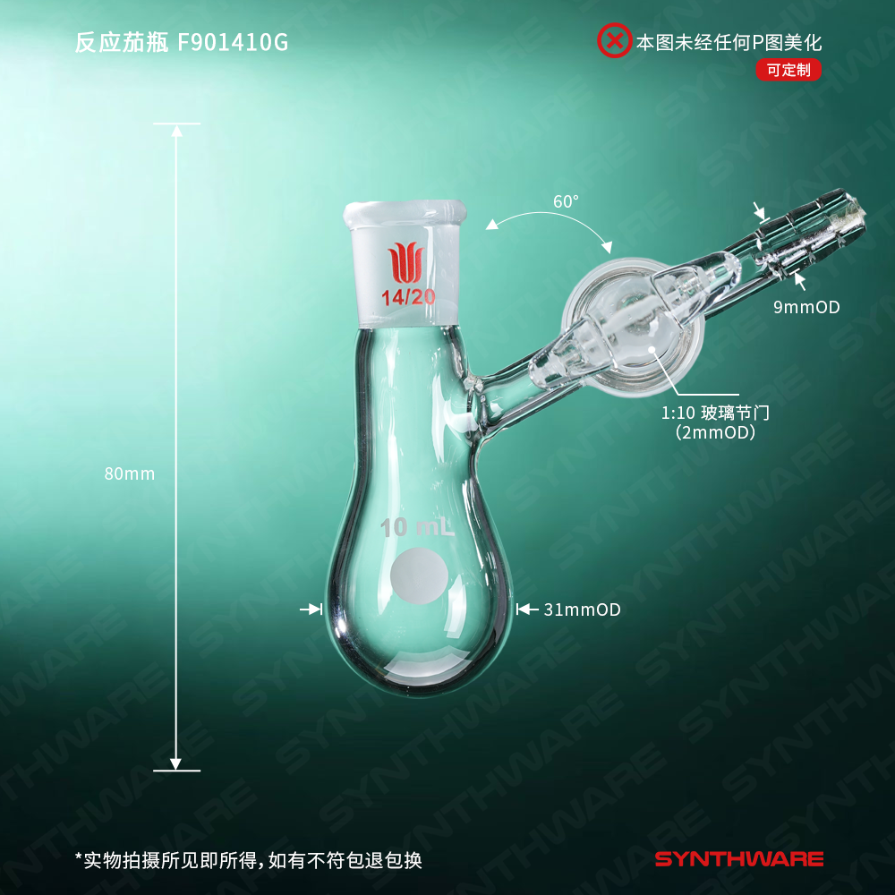反应茄瓶,磨口:14/20,10ml,玻璃节门 F901410G