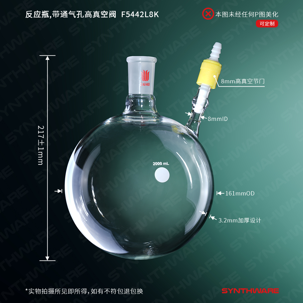 反应瓶,带通气孔高真空阀,2000ml,24/40 F5442L8K