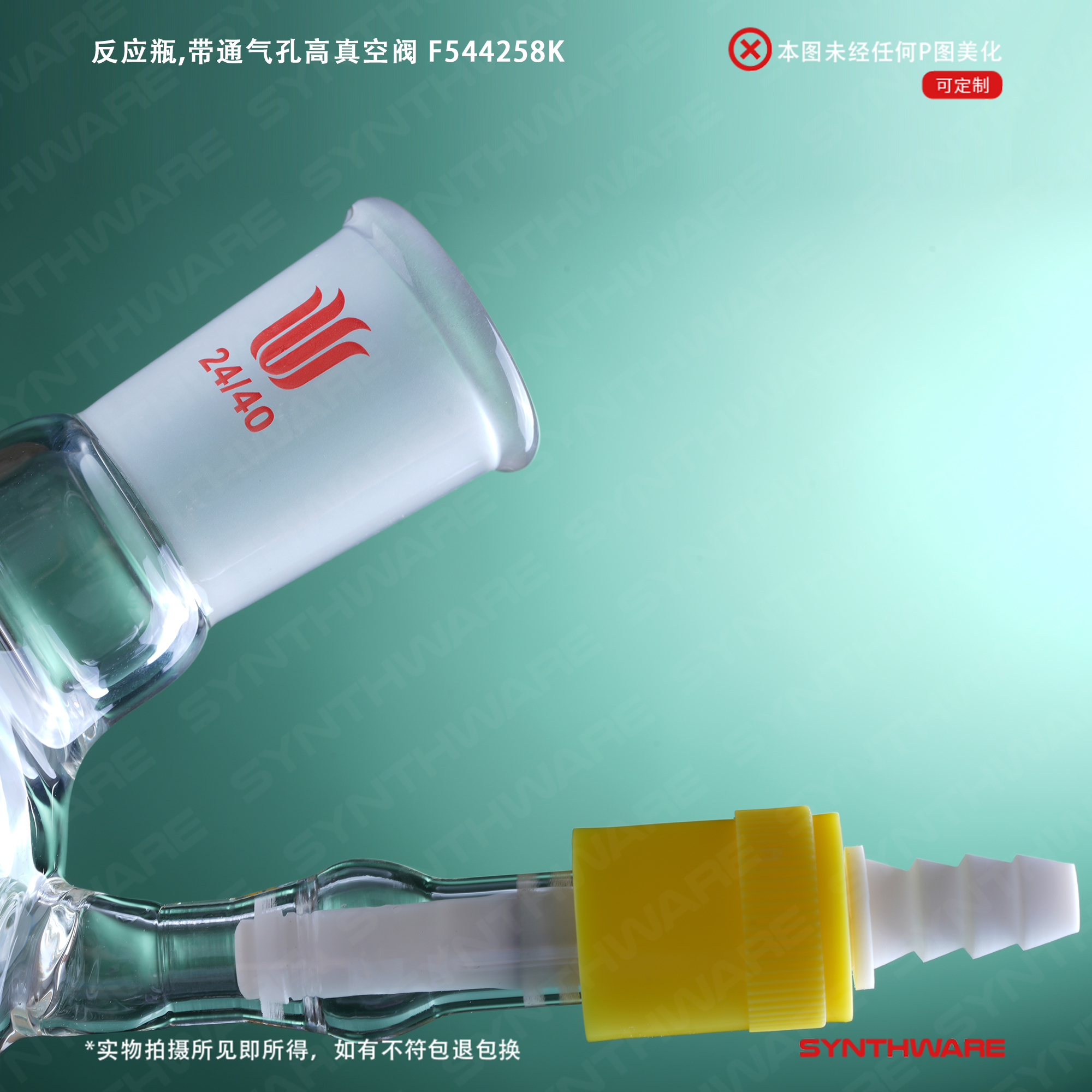 反应瓶,带通气孔高真空阀,100ml,19/22 F549100K
