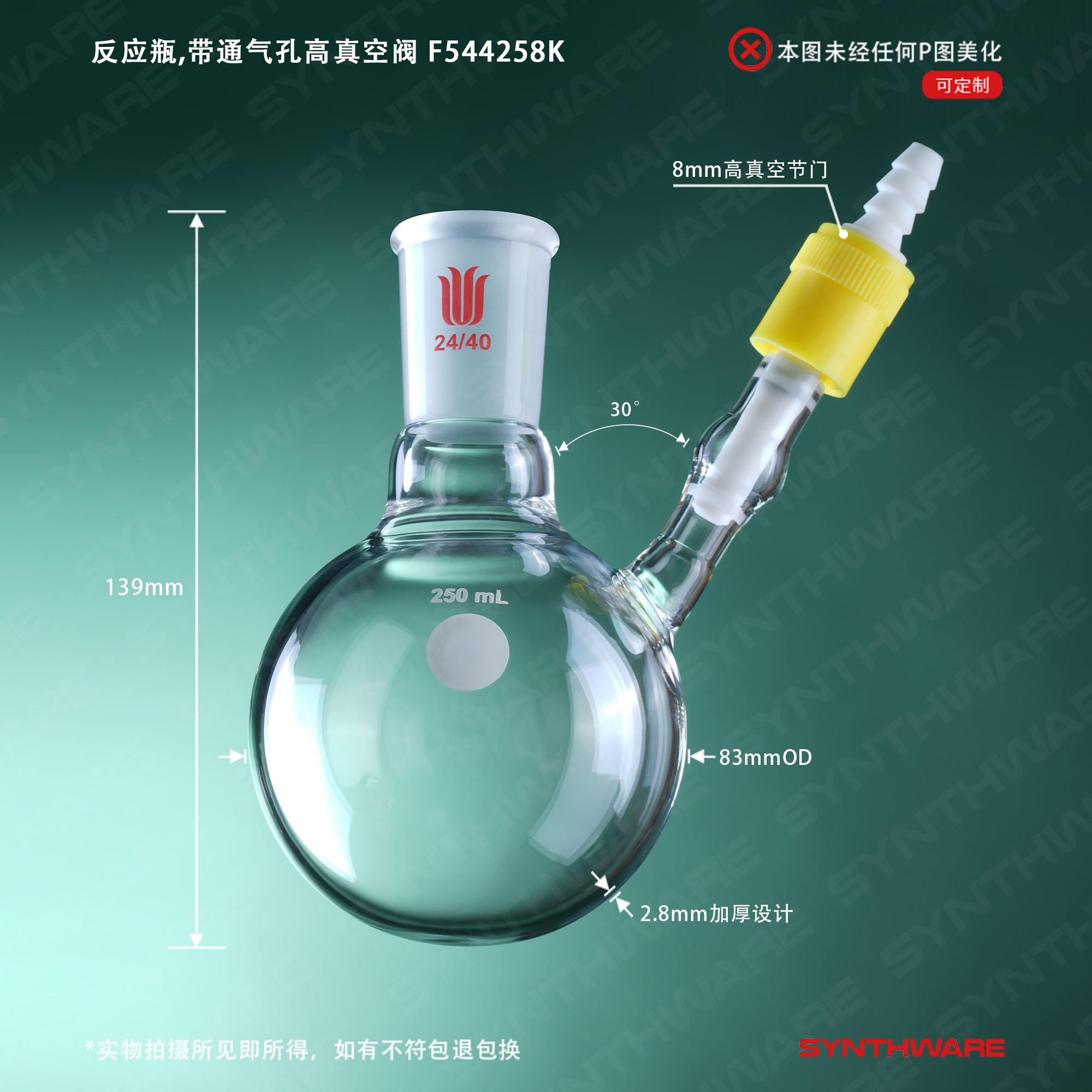 反应瓶,带通气孔高真空阀,250ml,14/20 F541258K