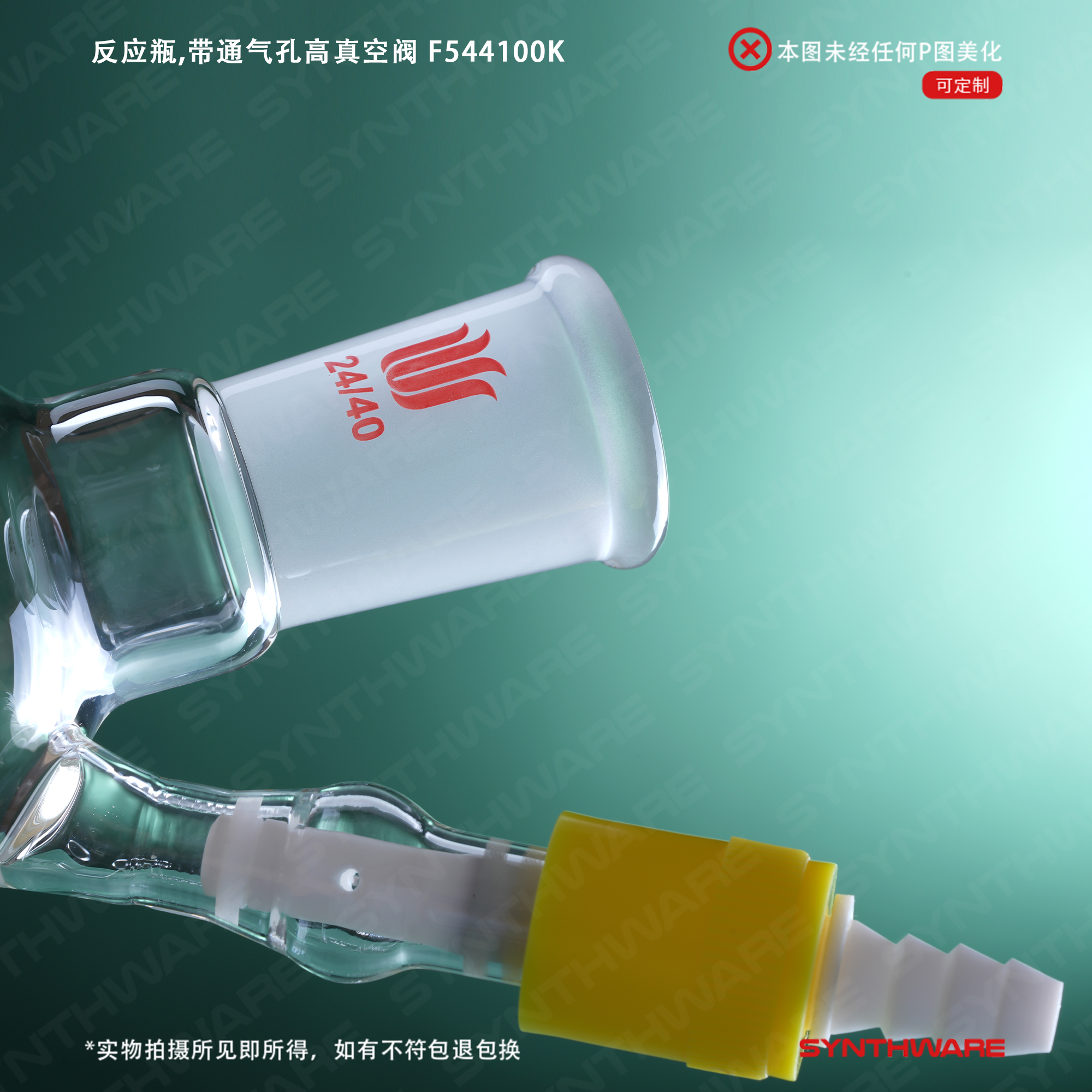 反应瓶,带通气孔高真空阀,100ml,19/22 F549100K