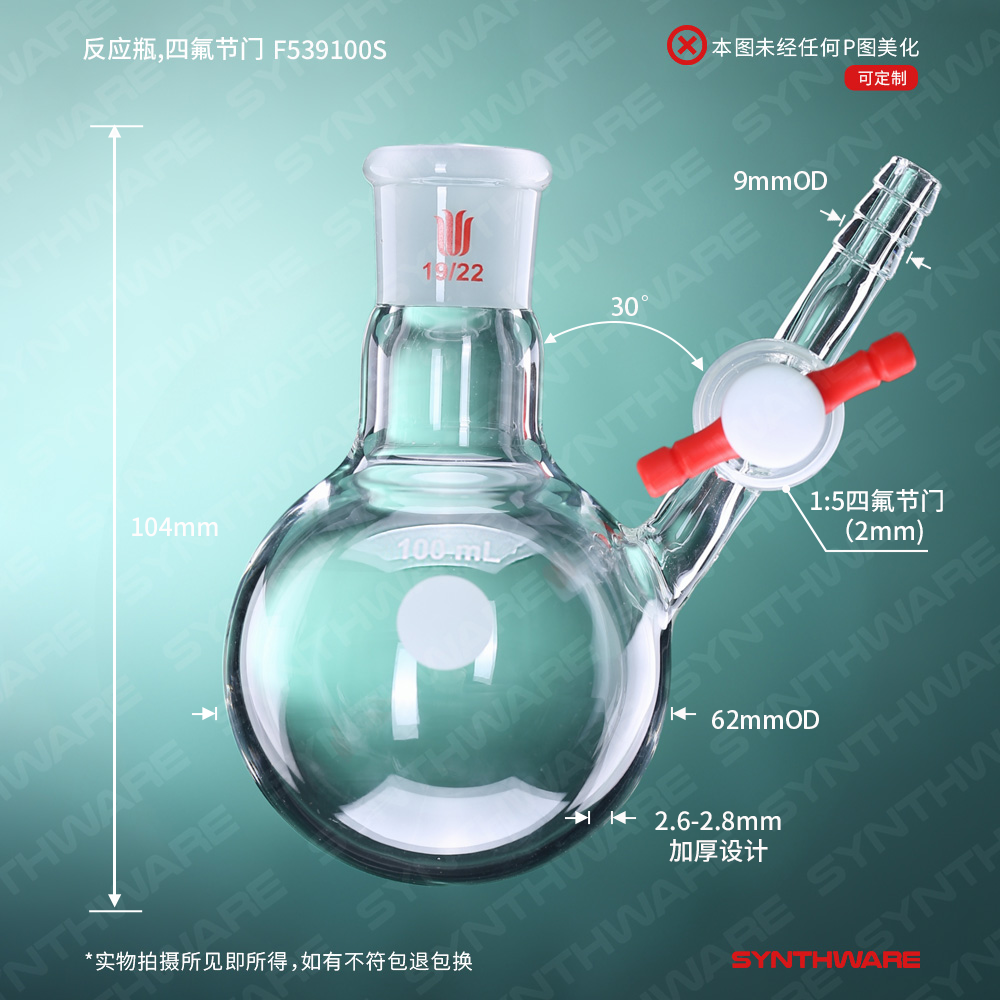 反应瓶,四氟节门,19/22,100ml F539100S