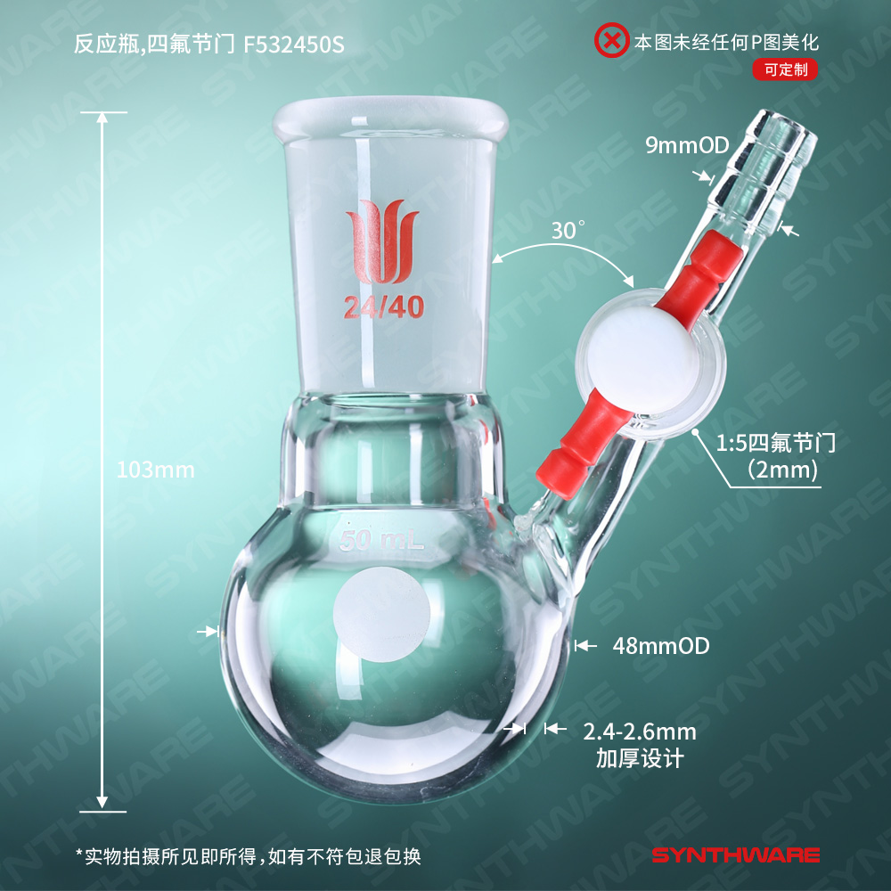 # 具2mm四氟门设计,标准1:5锥度精密研磨,旋塞磨口抛光处理,延长四氟旋塞使用寿命,确保良好的密封性和互换性。