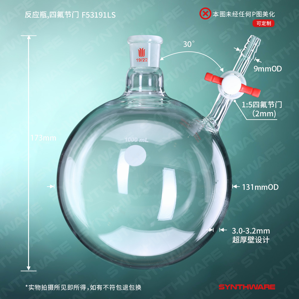 反应瓶,四氟节门,19/22,1000ml F53191LS
