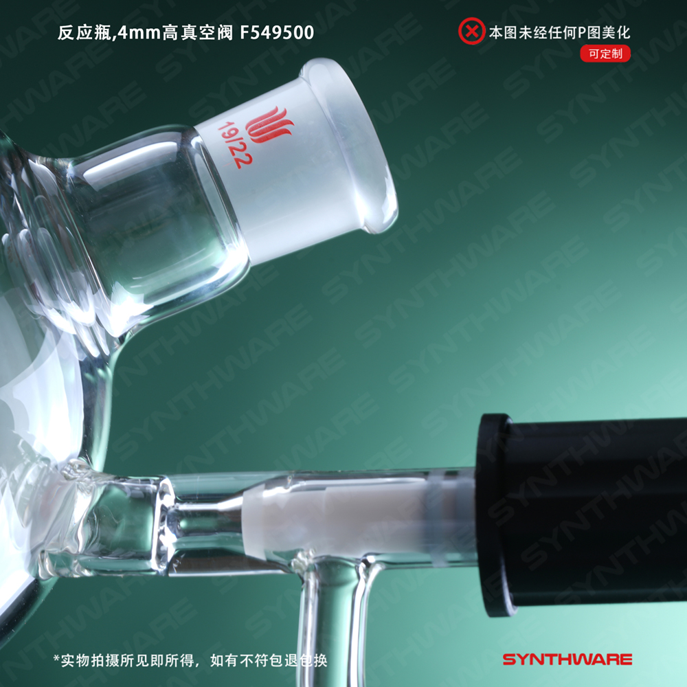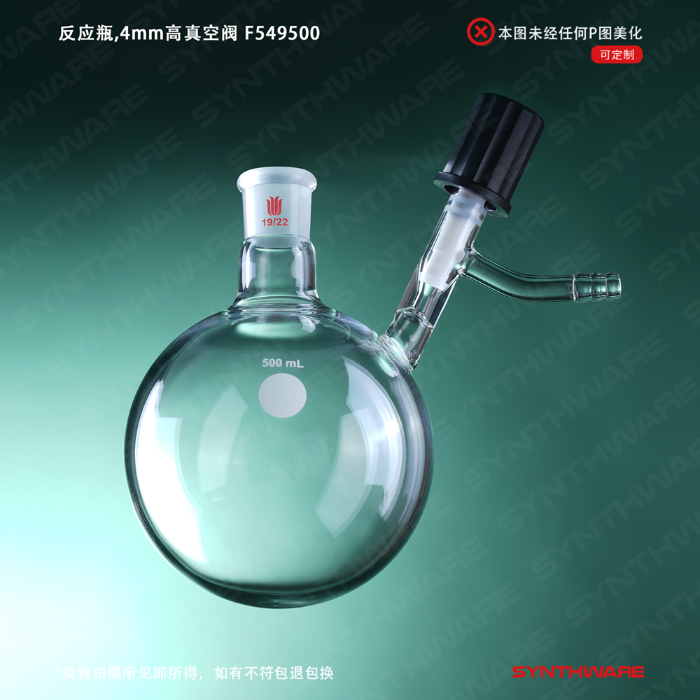 反应瓶 > 球型反应瓶 > 高真空节门-单口球型反应瓶 > SYNTHWARE > 反应瓶,4mm高真空阀,500ml,19/22 F549500
