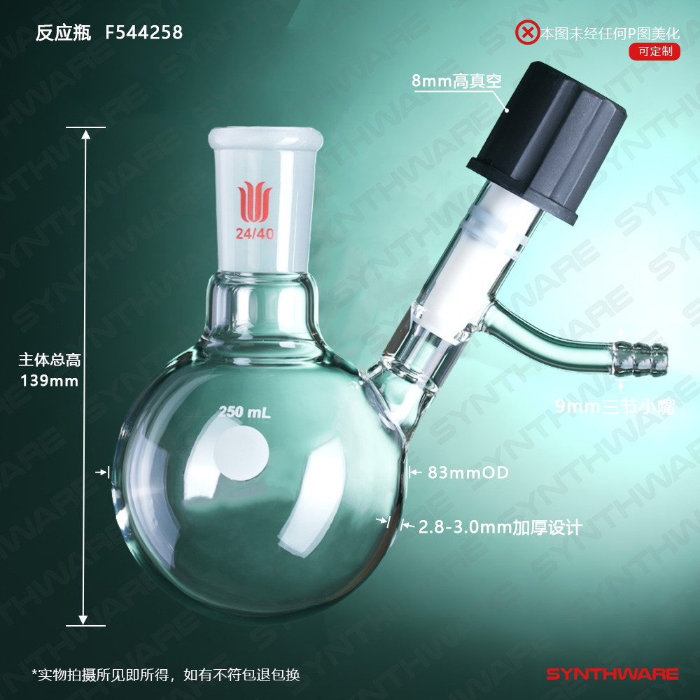 反应瓶,8mm高真空阀,250ml,24/40 F544258