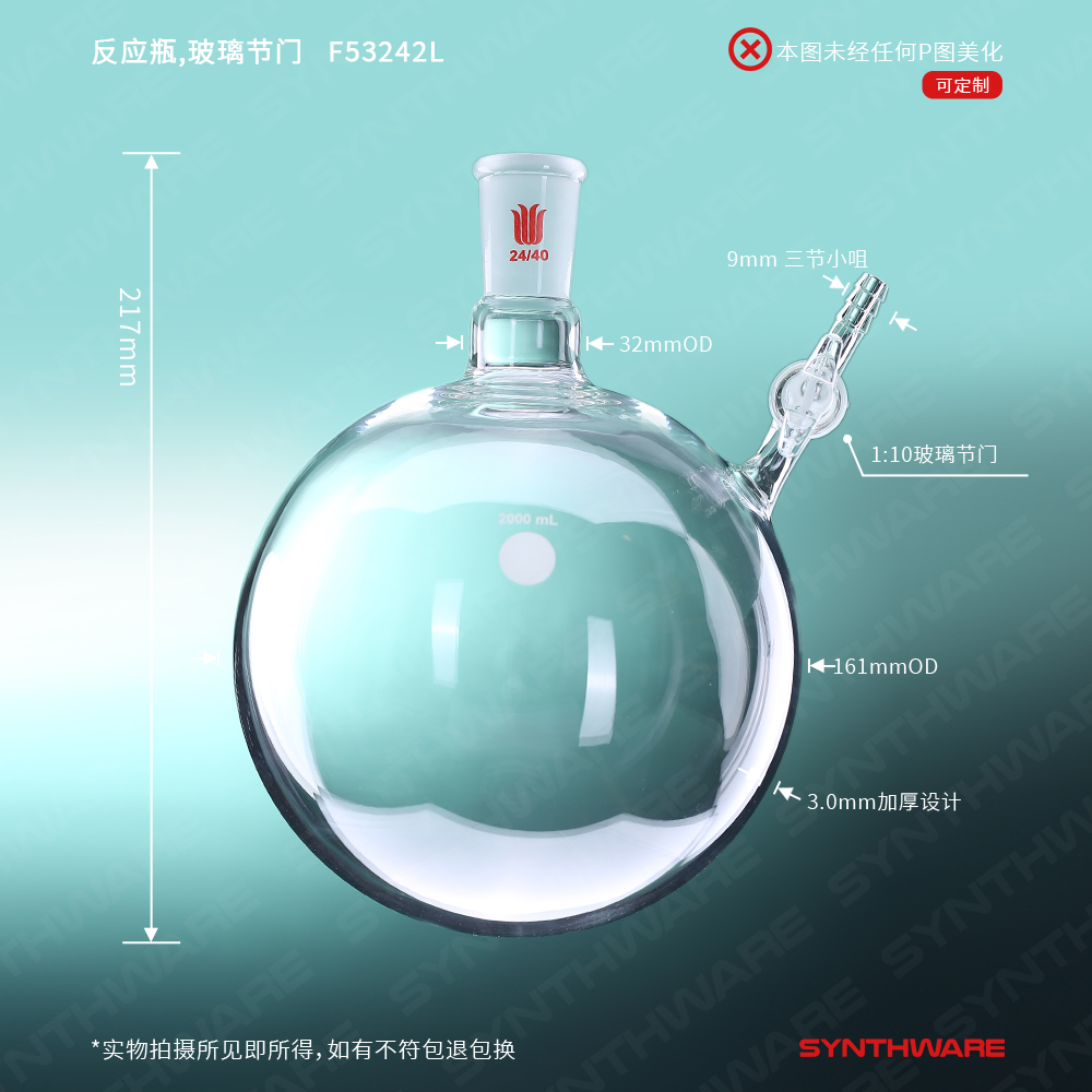 反应瓶,玻璃节门,24/40,2000ml F53242L