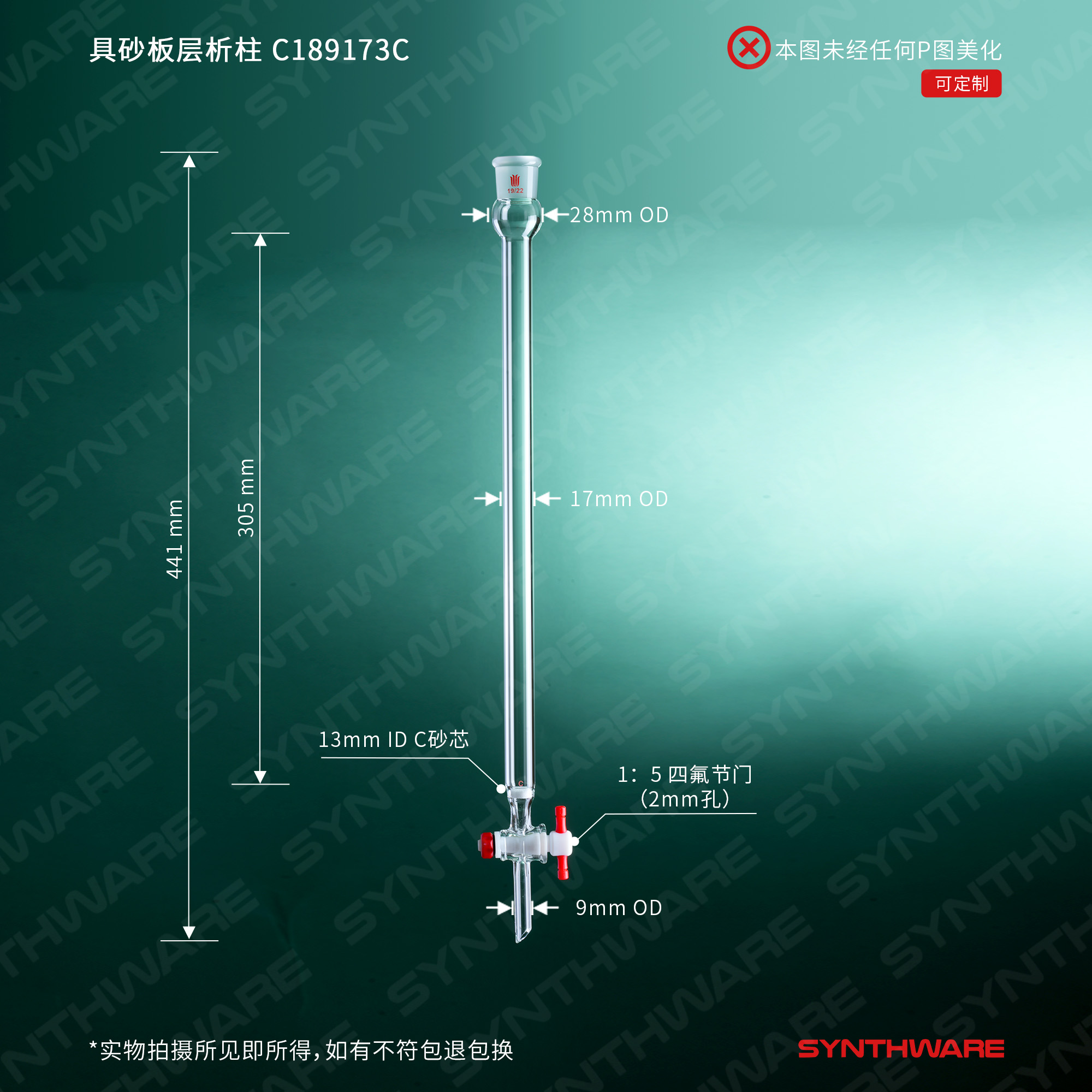层析类 > 层析柱 > 具砂板闪式层析柱 > SYNTHWARE > 具砂板层析柱,φ17mm,有效长305mm,节门孔径:2mm,19/22 C189173C