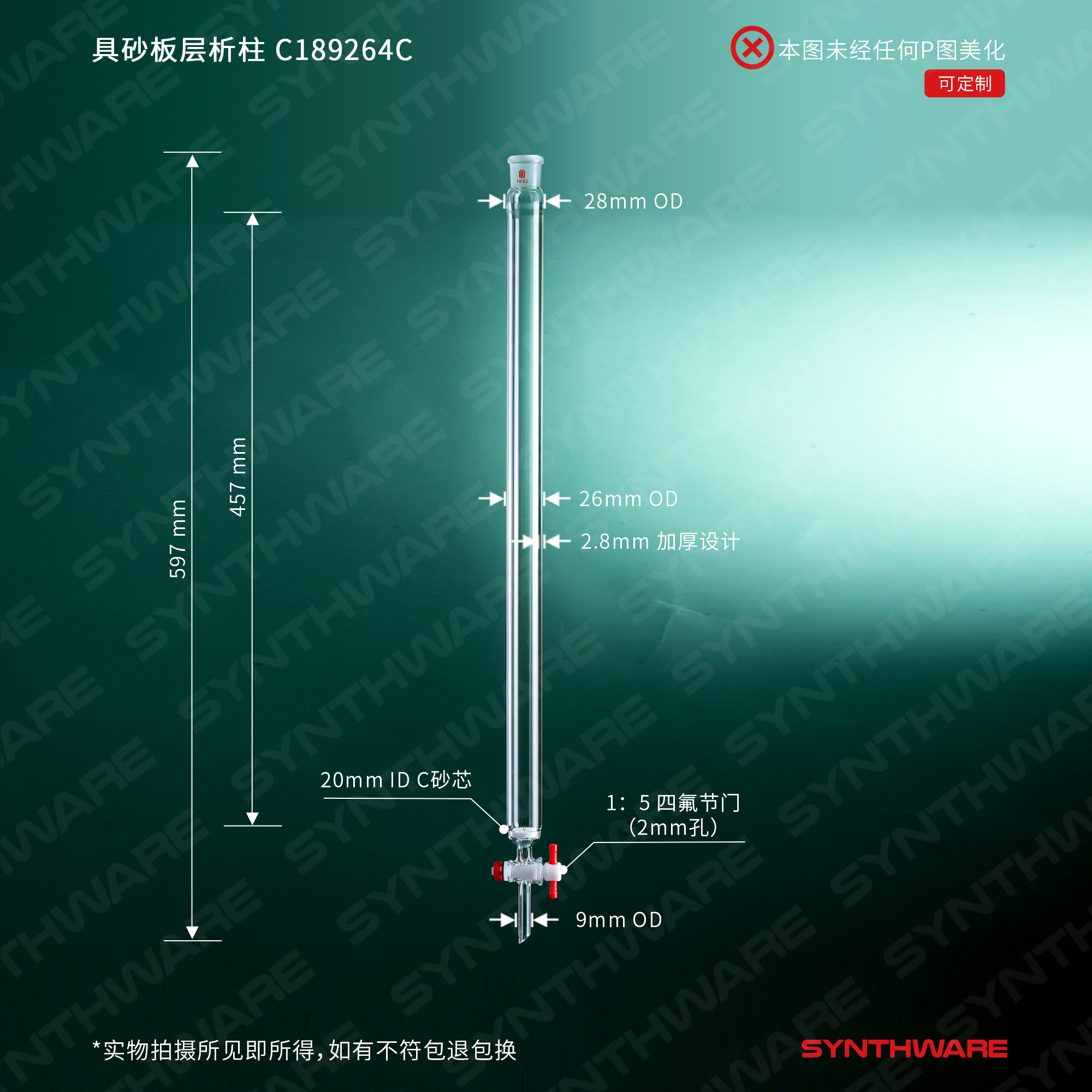 层析类 > 层析柱 > 具砂板闪式层析柱 > SYNTHWARE > 具砂板层析柱,φ26mm,有效长457mm,节门孔径:2mm,19/22 C189264C