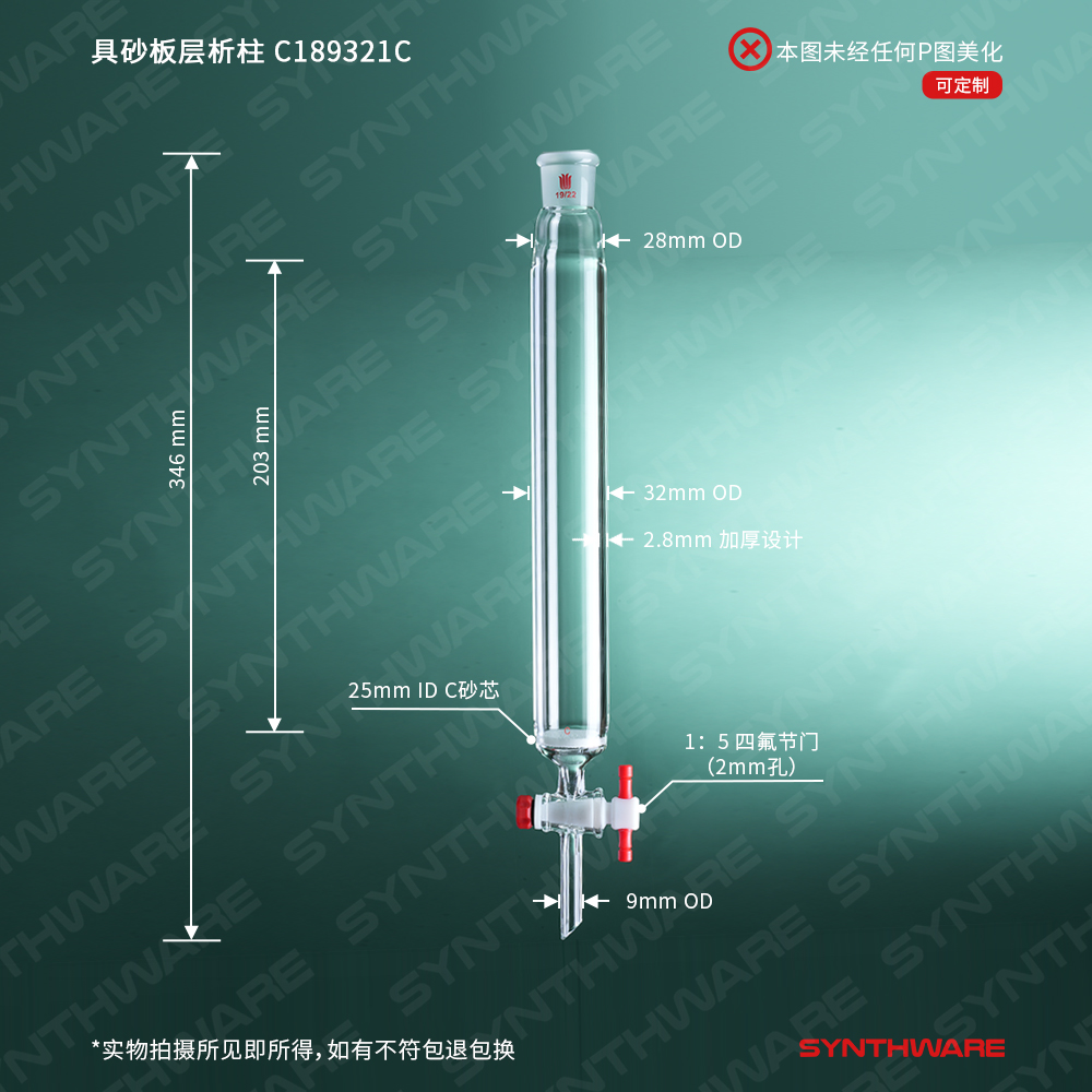 层析类 > 层析柱 > 具砂板闪式层析柱 > SYNTHWARE > 具砂板层析柱,φ32mm,有效长203mm,节门孔径:2mm,19/22 C189321C