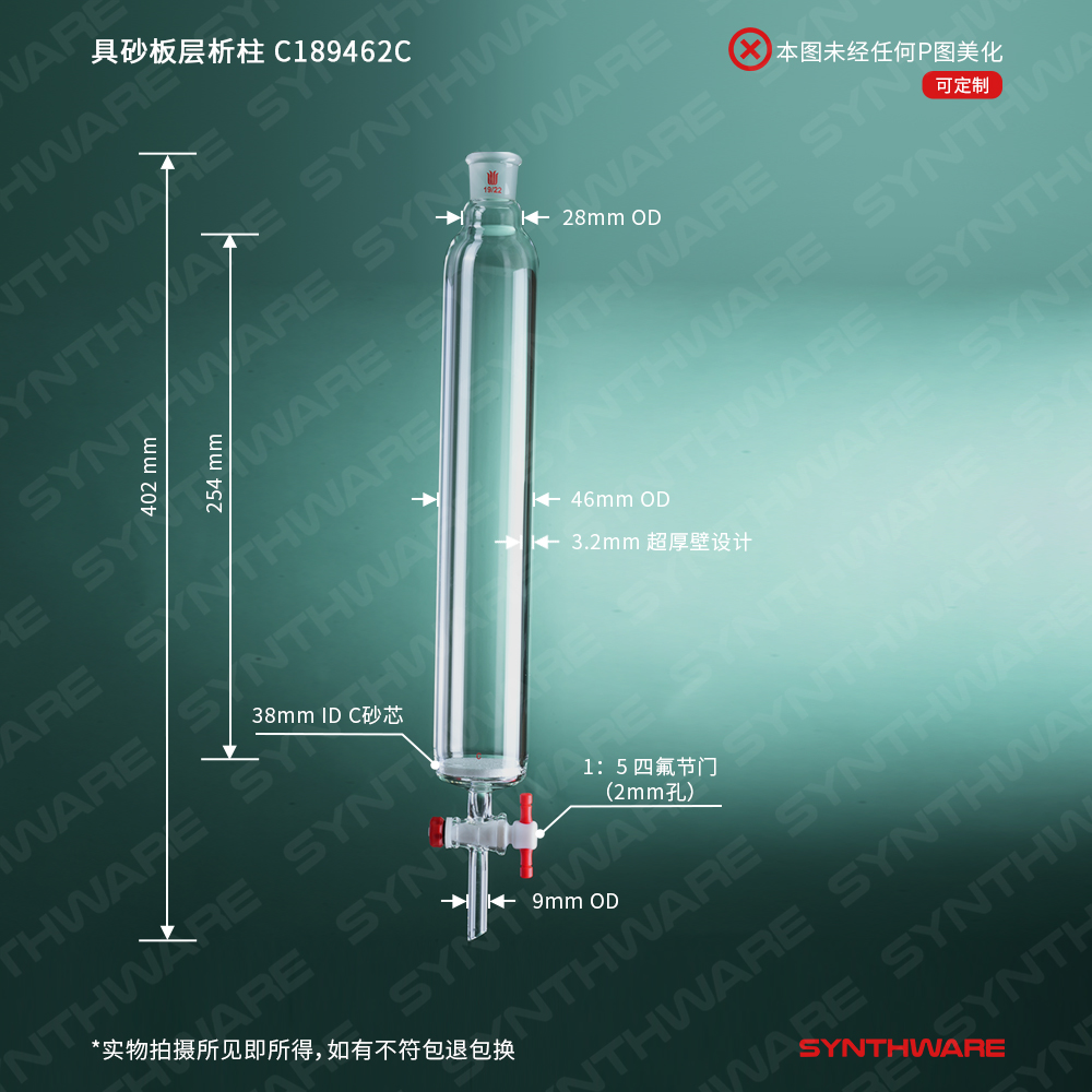层析类 > 层析柱 > 具砂板闪式层析柱 > SYNTHWARE > 具砂板层析柱,φ46mm,有效长254mm,节门孔径:2mm,19/22 C189462C