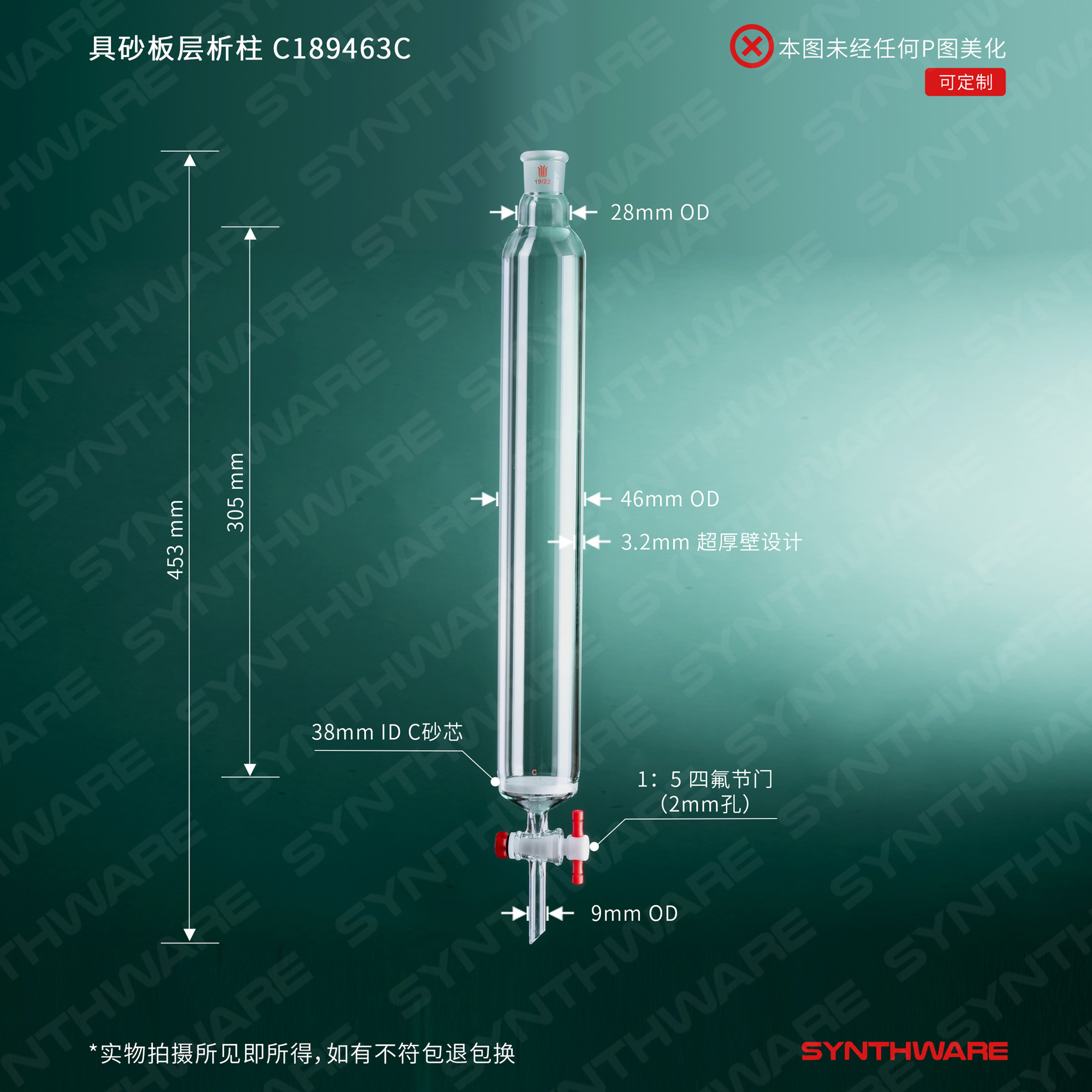 层析类 > 层析柱 > 具砂板闪式层析柱 > SYNTHWARE > 具砂板层析柱,φ46mm,有效长305mm,节门孔径:2mm,19/22 C189463C