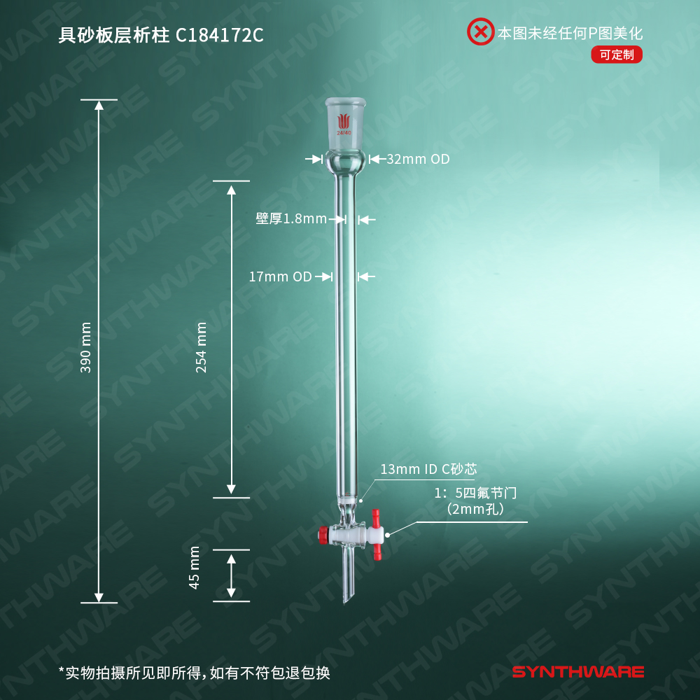 层析类 > 层析柱 > 具砂板闪式层析柱 > SYNTHWARE > 具砂板层析柱,φ17mm,有效长254mm,节门孔径:2mm,24/40 C184172C