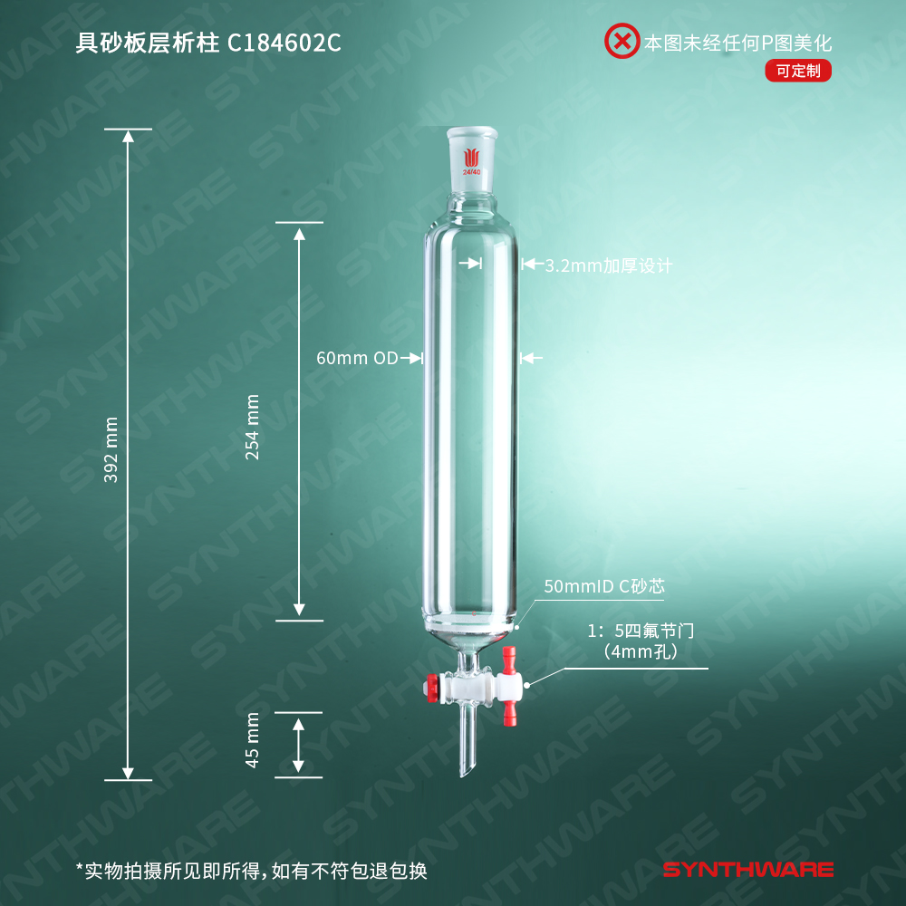 具砂板层析柱,φ60mm,有效长254mm,节门孔径:4mm,24/40 C184602C