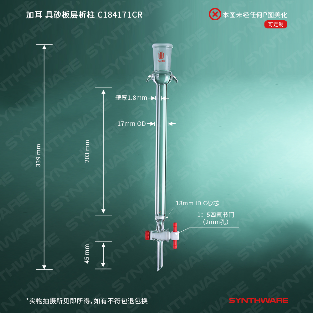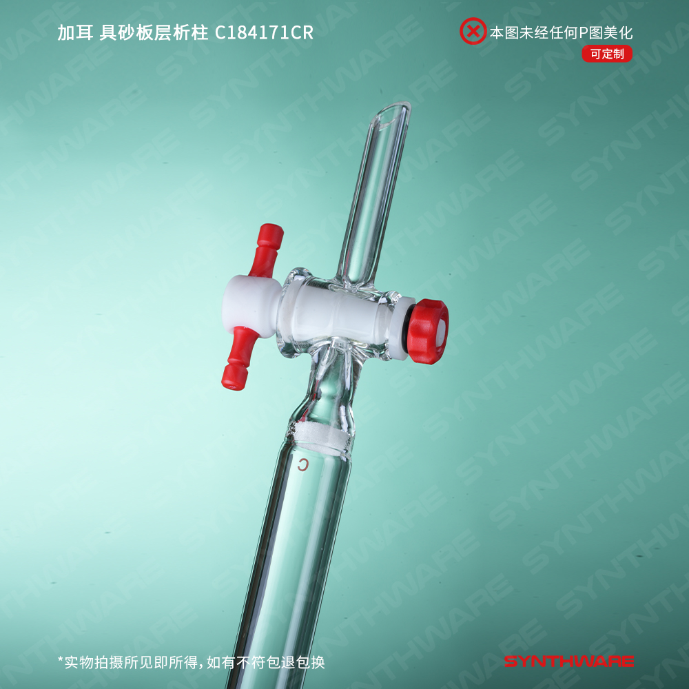 层析类 > 层析柱 > 带挂钩-具砂板闪式层析柱 > SYNTHWARE > 加耳 具砂板层析柱,φ17mm,有效长203mm,节门孔径:2mm,24/40 C184171CR