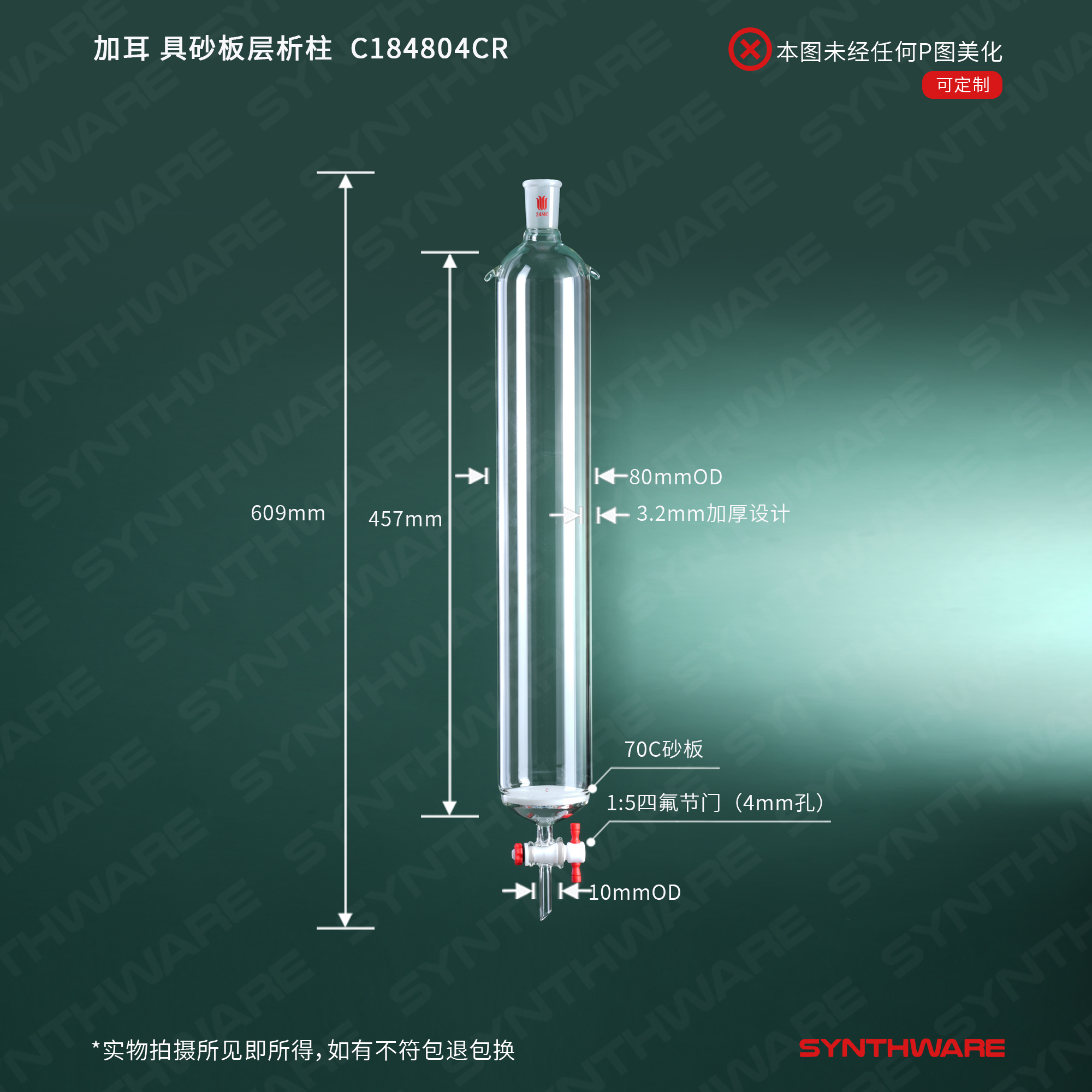 层析类 > 层析柱 > 带挂钩-具砂板闪式层析柱 > SYNTHWARE > 加耳 具砂板层析柱,φ80mm,有效长457mm,节门孔径:4mm,24/40 C184804CR