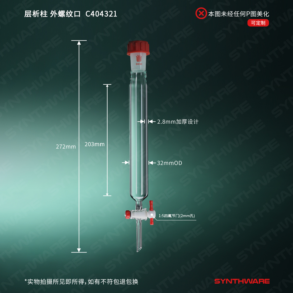 层析类 > 层析柱 > 外螺纹口-无砂芯层析柱 > SYNTHWARE > 层析柱,外螺纹口,φ32mm,有效长:203mm C404321