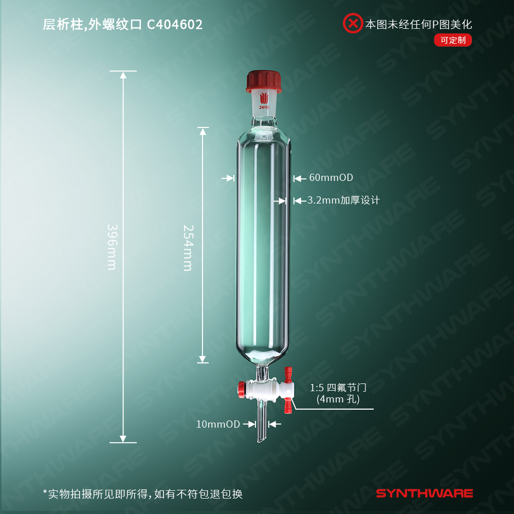 层析类 > 层析柱 > 外螺纹口-无砂芯层析柱 > SYNTHWARE > 层析柱,外螺纹口,φ60mm,有效长:254mm C404602