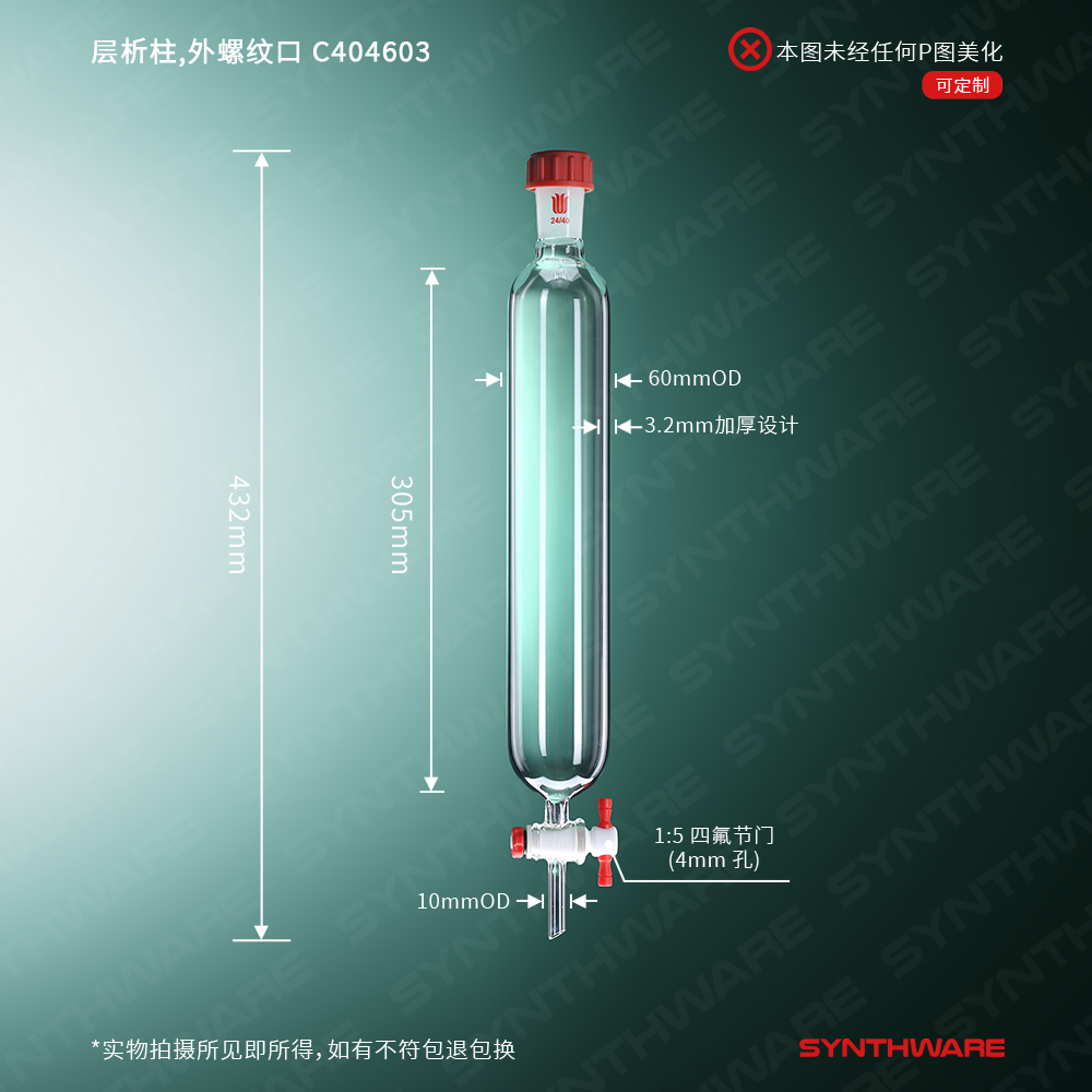 层析类 > 层析柱 > 外螺纹口-无砂芯层析柱 > SYNTHWARE > 层析柱,外螺纹口,φ60mm,有效长:305mm C404603