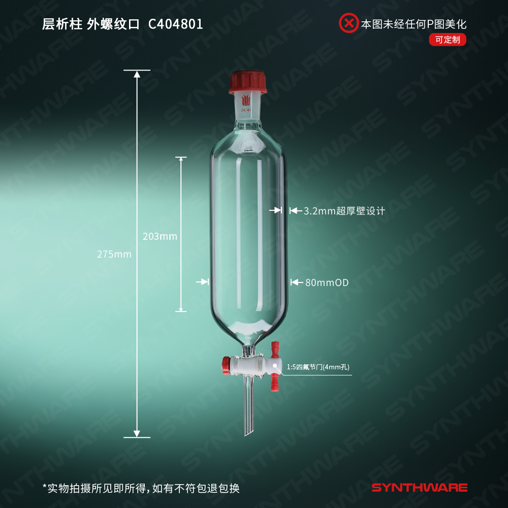 层析类 > 层析柱 > 外螺纹口-无砂芯层析柱 > SYNTHWARE > 层析柱,外螺纹口,φ80mm,有效长:203mm C404801