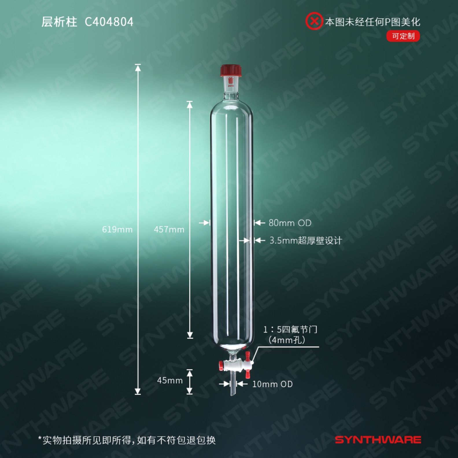 层析类 > 层析柱 > 外螺纹口-无砂芯层析柱 > SYNTHWARE > 层析柱,外螺纹口,φ80mm,有效长:457mm C404804