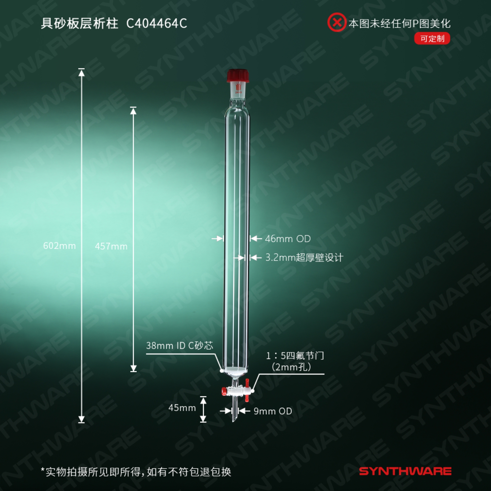层析类 > 层析柱 > 具砂板外螺纹口层析柱 > SYNTHWARE > 具砂板层析柱,外螺纹口,φ46mm,有效长:457mm,C C404464C