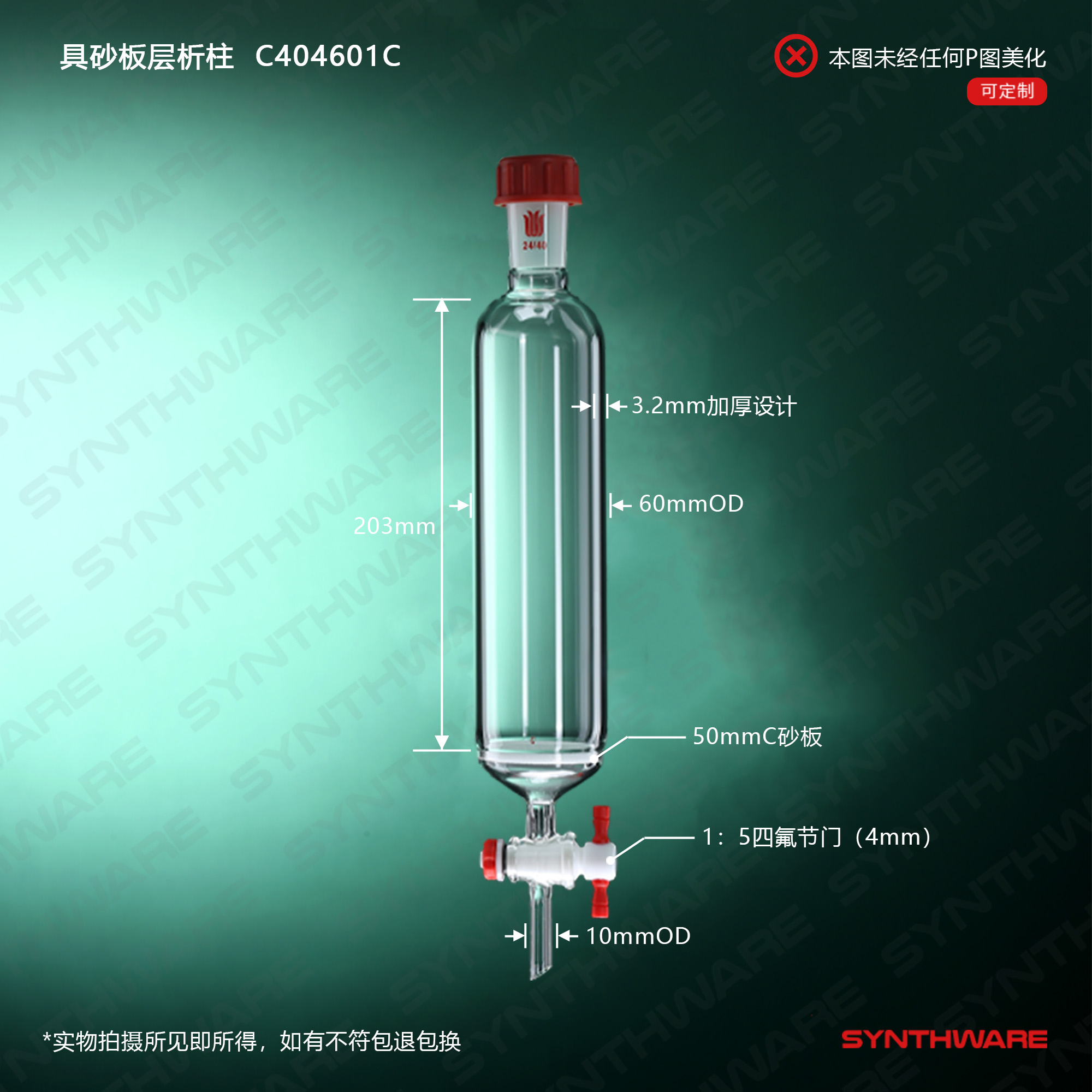 层析类 > 层析柱 > 具砂板外螺纹口层析柱 > SYNTHWARE > 具砂板层析柱,外螺纹口,φ60mm,有效长:203mm,C C404601C