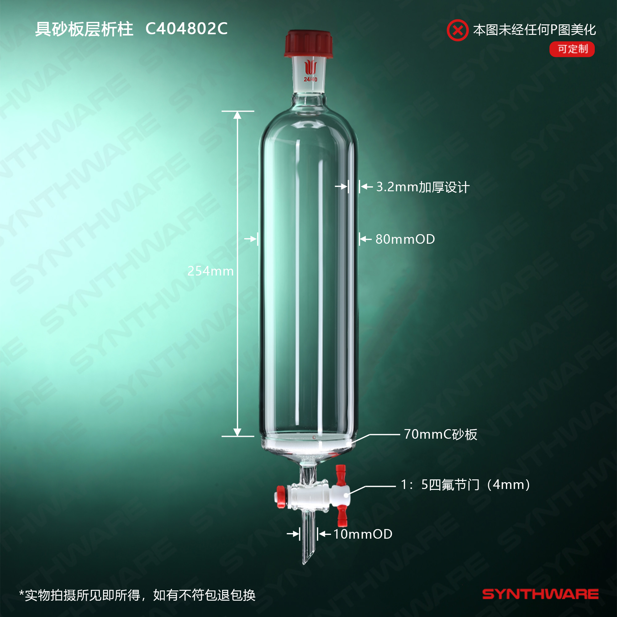 层析类 > 层析柱 > 具砂板外螺纹口层析柱 > SYNTHWARE > 具砂板层析柱,外螺纹口,φ80mm,有效长:254mm,C C404802C