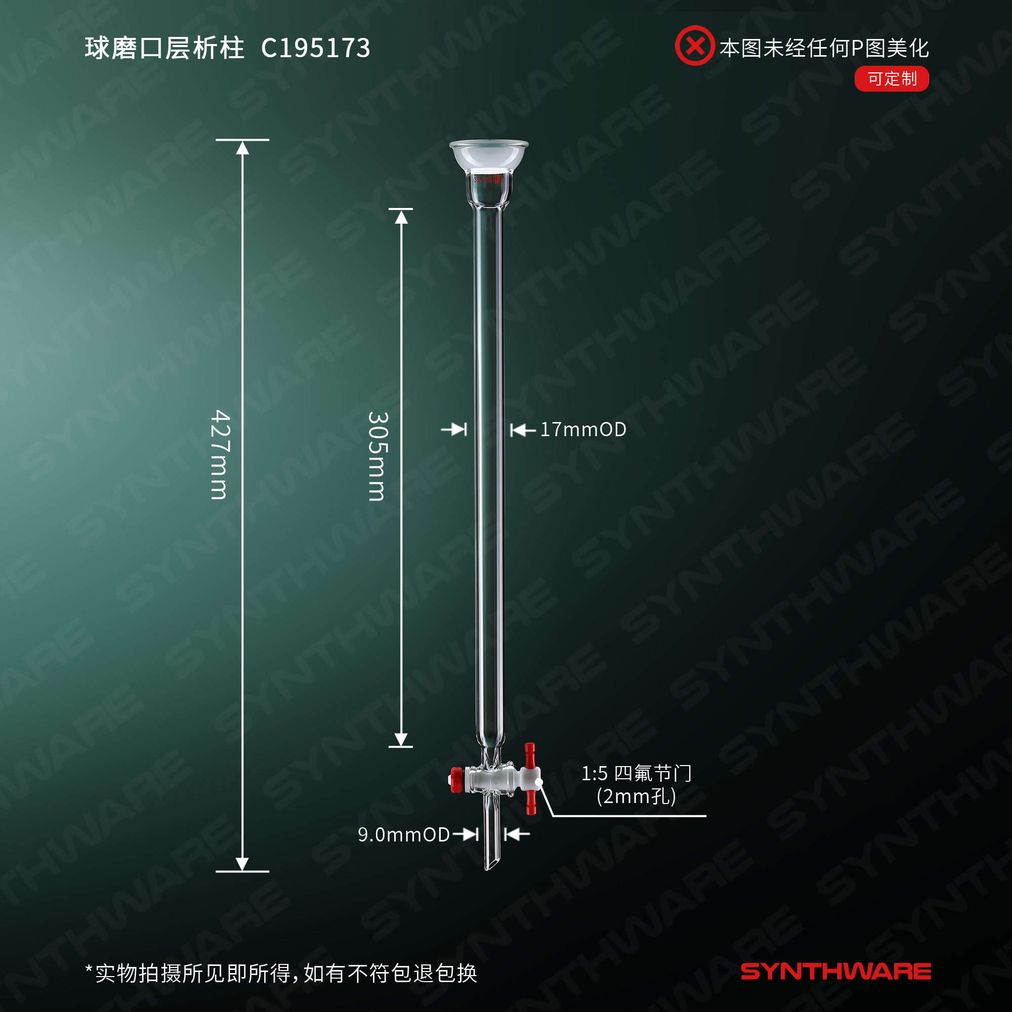 层析类 > 层析柱 > 球碗口闪式-无砂版层析柱 > SYNTHWARE > 球磨口层析柱,φ17mm,有效长:305mm,2mm节门孔径,35/20 C195173
